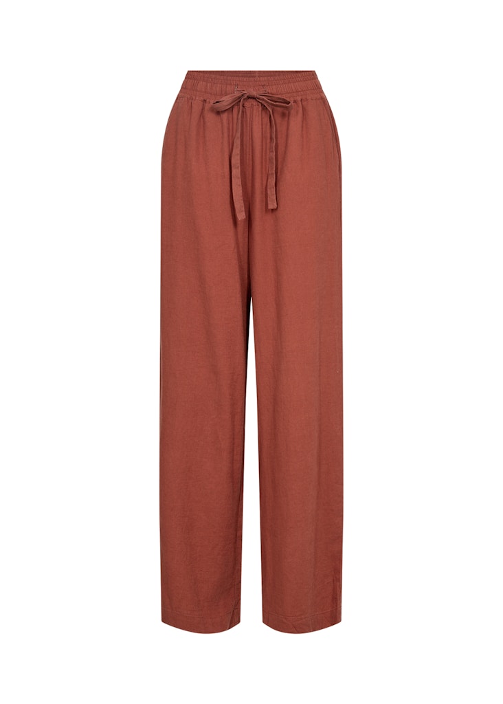 SC-Ina 61-C ist eine bequeme Hose aus einer schönen Mischung aus Leinen und Viskose. Die Hose hat eine hohe Taille mit Kordelzug, schräge Seitentaschen und eine lockere Passform. Kombiniere sie mit einem T-Shirt und einer Strickweste für einen klassischen Look.
