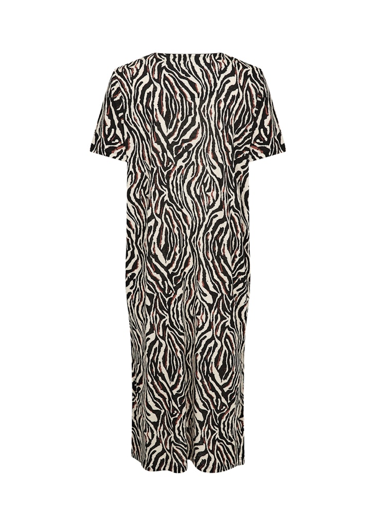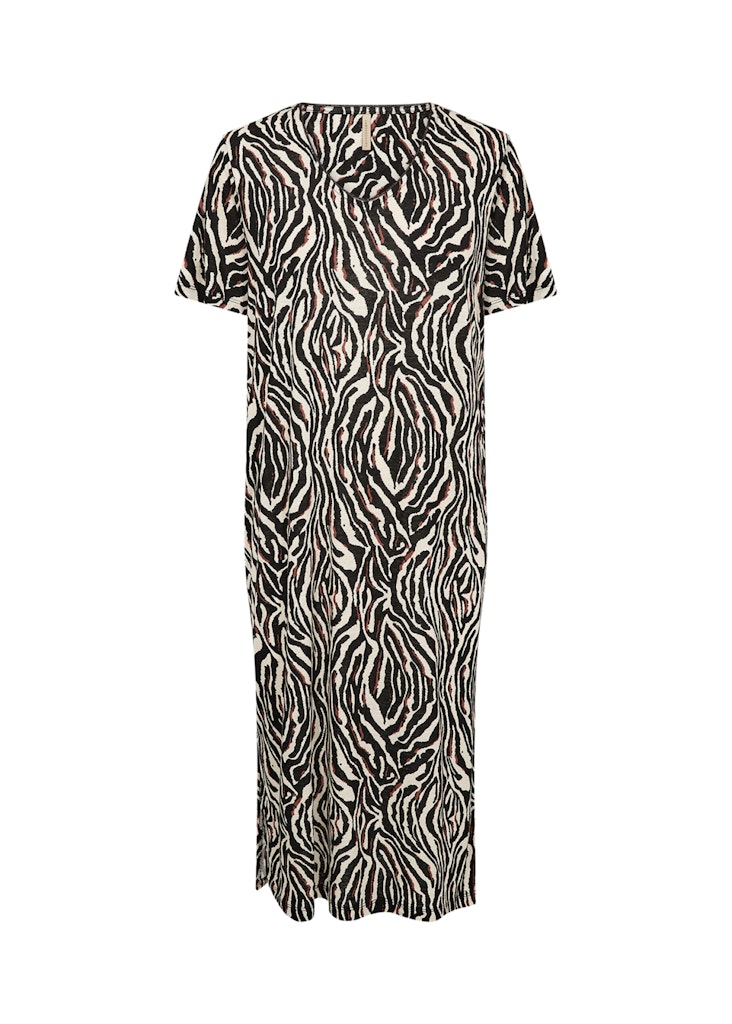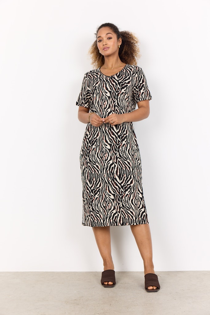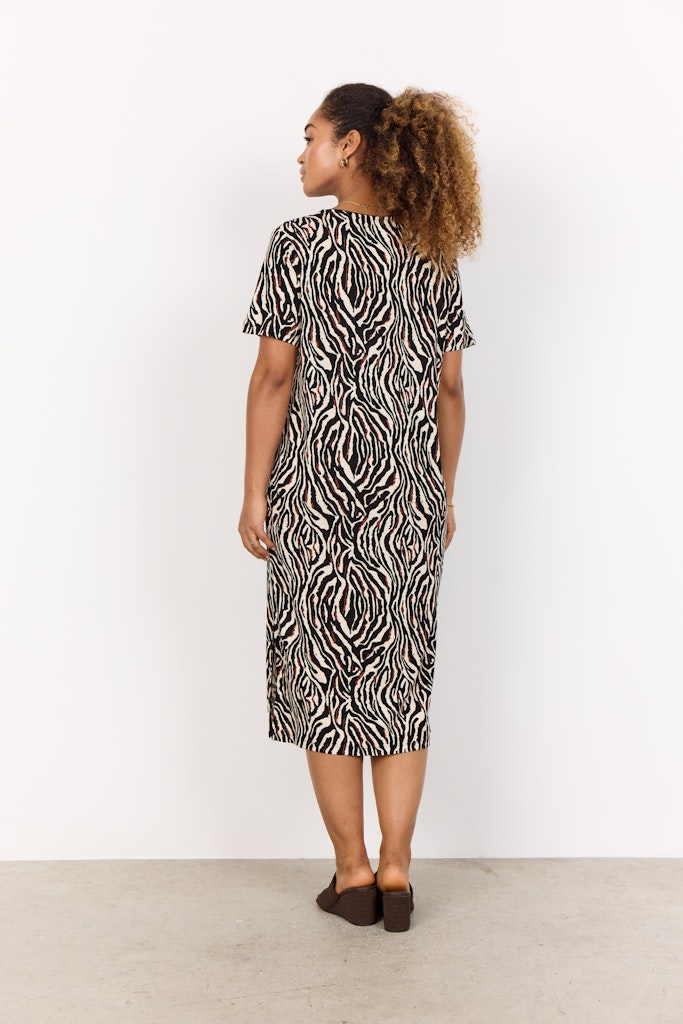 SC-LENISE 6 ist ein mittellanges Kleid aus einer Materialmischung aus 55% Leinen und 45% Viskose. Das Kleid hat eine lockere Passform, kurze Ärmel, einen Rundhalsausschnitt und ist mit einem Tiermuster verziert. Es lässt sich gut mit einer Vielzahl von Schuhen und Accessoires für verschiedene Anlässe kombinieren.