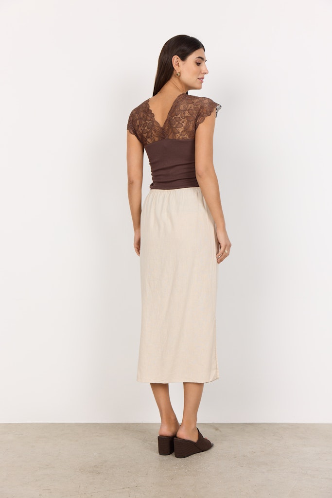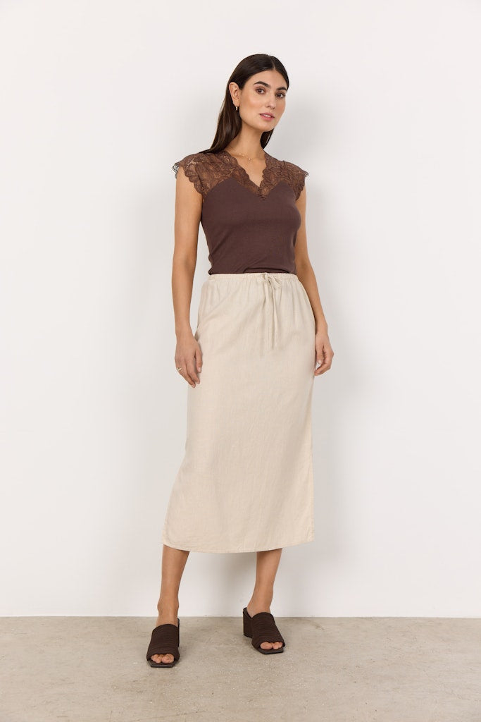 SC-INA 67 ist ein eleganter, langer Rock aus einer Mischung aus 55% Leinen und 45% Viskose. Er verfügt über einen verstellbaren Kordelzug in der Taille für eine bequeme Passform und hat eine weiche, fließende Silhouette. Dieser Rock lässt sich gut mit einem taillierten Oberteil kombinieren und kann mit Accessoires für verschiedene Anlässe aufgepeppt werden.