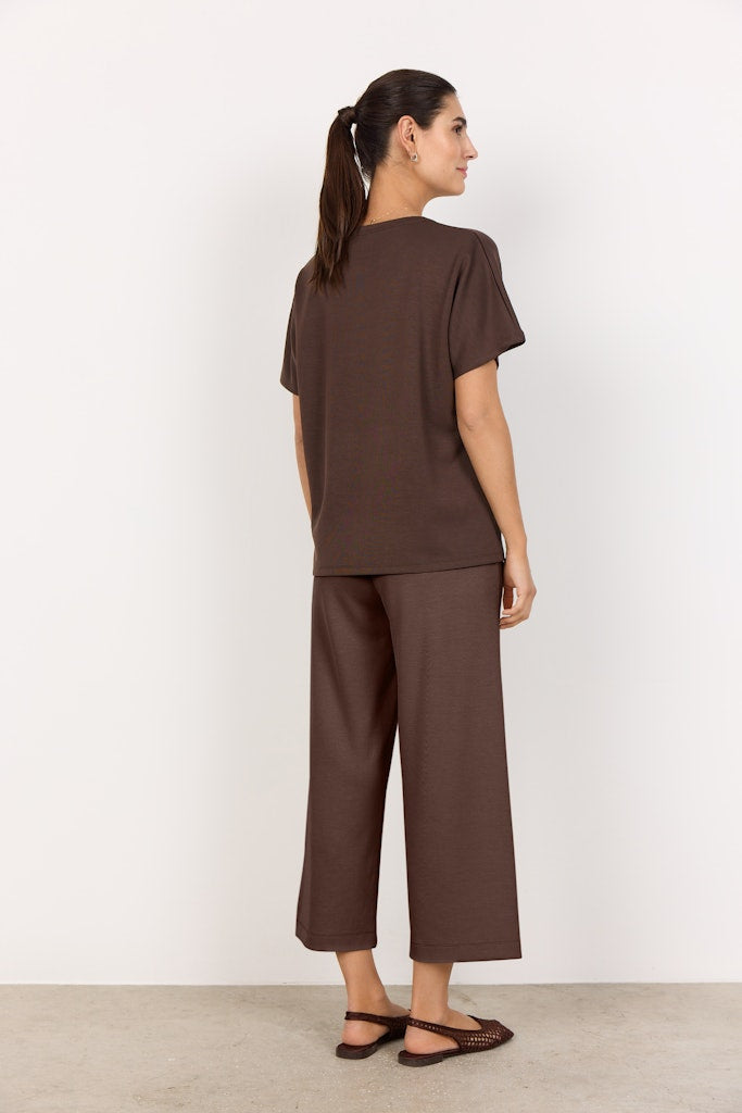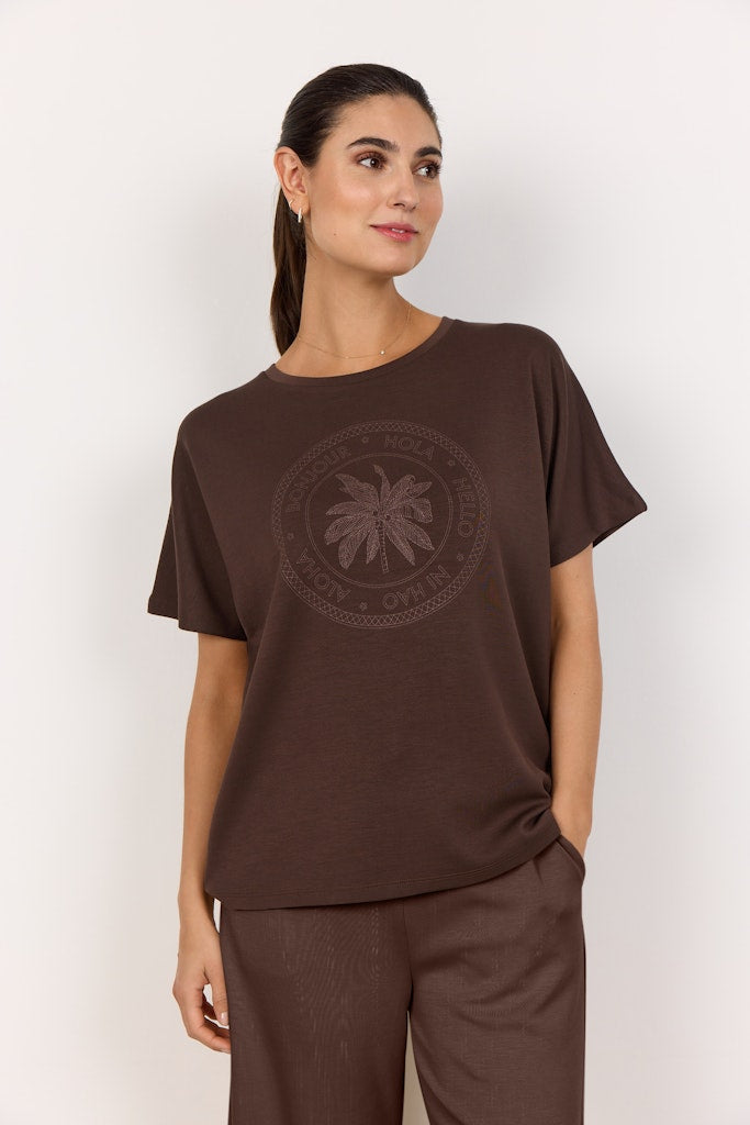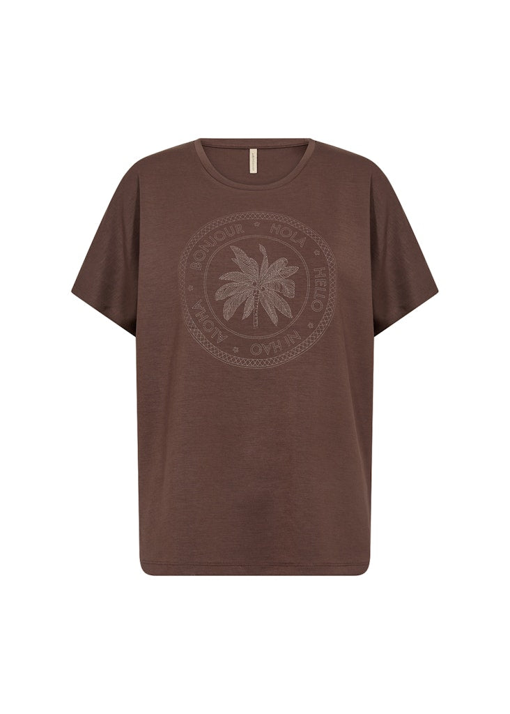 SC-BANU 230 ist ein bequemes T-Shirt aus einer Mischung aus 48% Modal, 48% Polyester und 4% Elastan. Das T-Shirt hat einen Rundhalsausschnitt, kurze Ärmel und einen zentralen, kreisförmigen Grafikdruck mit Grußworten in verschiedenen Sprachen, die ein Blumenmotiv umrahmen. Kombiniere es mit einer lässigen Hose für einen entspannten Look oder trage es unter einer Jacke für einen strukturierten Look.