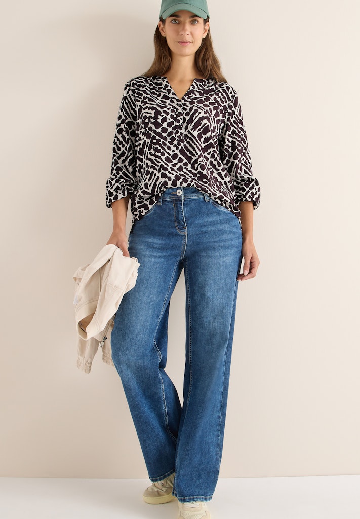 Mit ihrem grafischen Muster und dem femininen Split Neck ist diese Bluse von CECIL für Damen ein stilvoller Hingucker. Elastische Bündchen sorgen für eine angenehme Passform, während die weiche Viskose fließend fällt. Ideal für modische Alltagskombinationen. Damenbluse Split Neck Langarm mit elastischen Bündchen Grafisches Muster Weiche Viskose Material: 100% Viskose