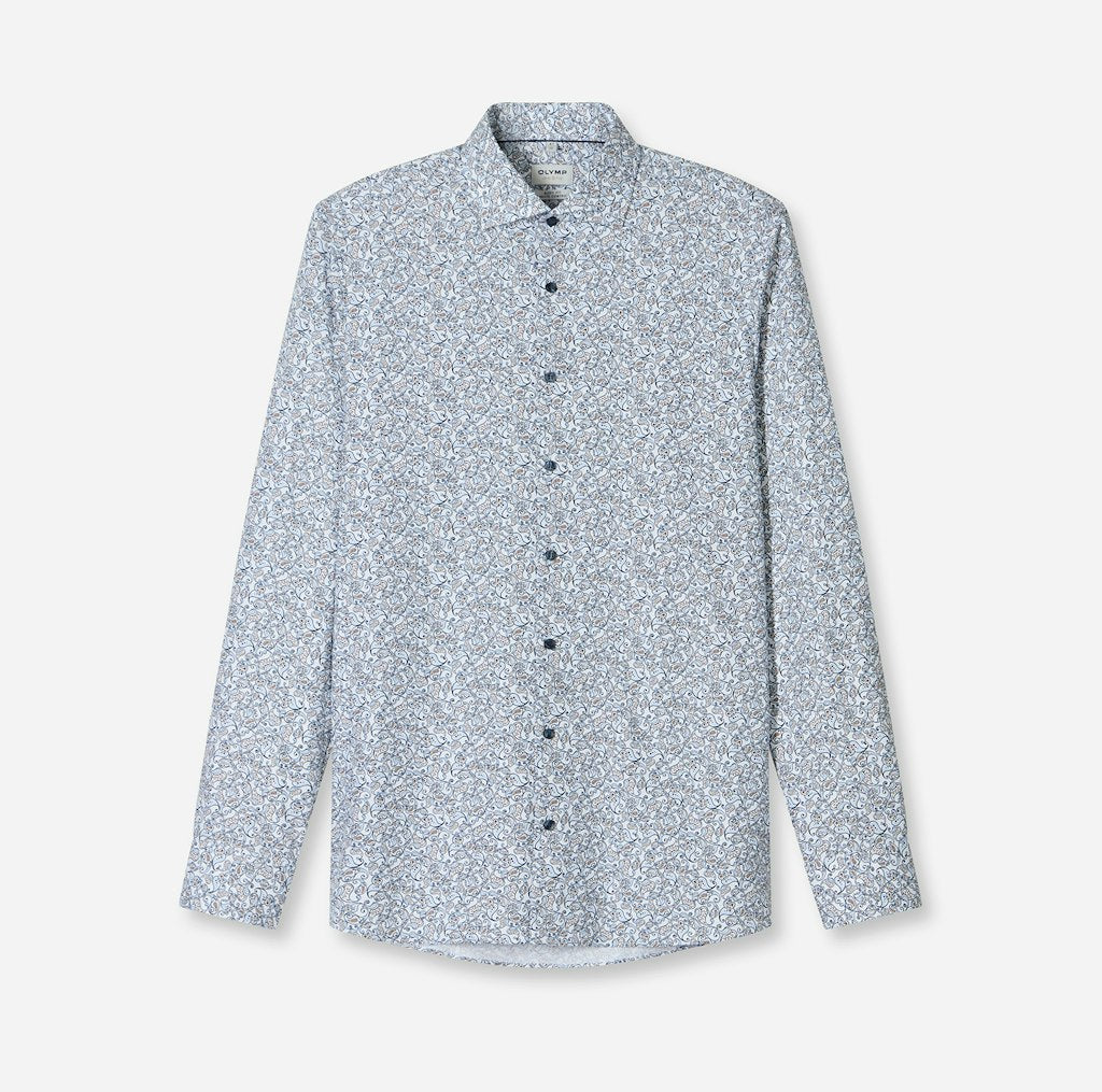 Eine smarte Paisley-Neuinterpretation zeigt sich in diesem weißen, blickdichten OLYMP Level Five. Das körperbetonte Businesshemd aus bewährtem Climate-Control-Fasermix überzeugt stilvoll und funktional. Er ist pflegeleicht, atmungsaktiv, dehnbar, schnelltrocknend sowie temperatur- und feuchtigkeitsregulierend.