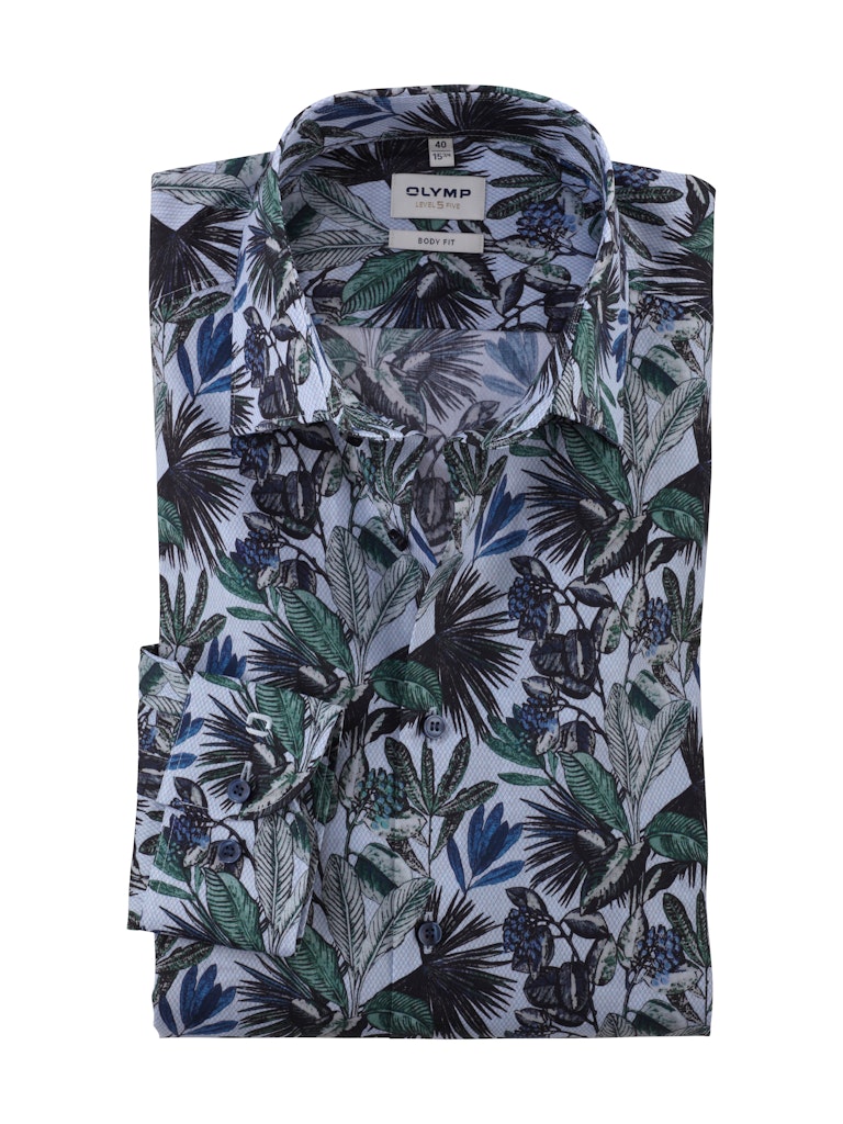 Sportive Linie, ausdrucksstarkes Print-Dessin, innovativer New York Kent – dieses OLYMP Level Five Businesshemd signalisiert Kreativität. Die Comfort-Stretch Textur aus extra-feinem Baumwoll-Popeline mit drei Prozent Elastolefin-Anteil garantiert ein hautsympathisches Tragegefühl bei körperbetonter Formbeständigkeit. Besonders bügelleicht.