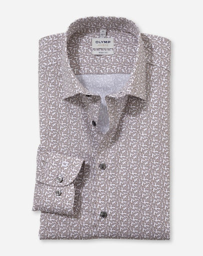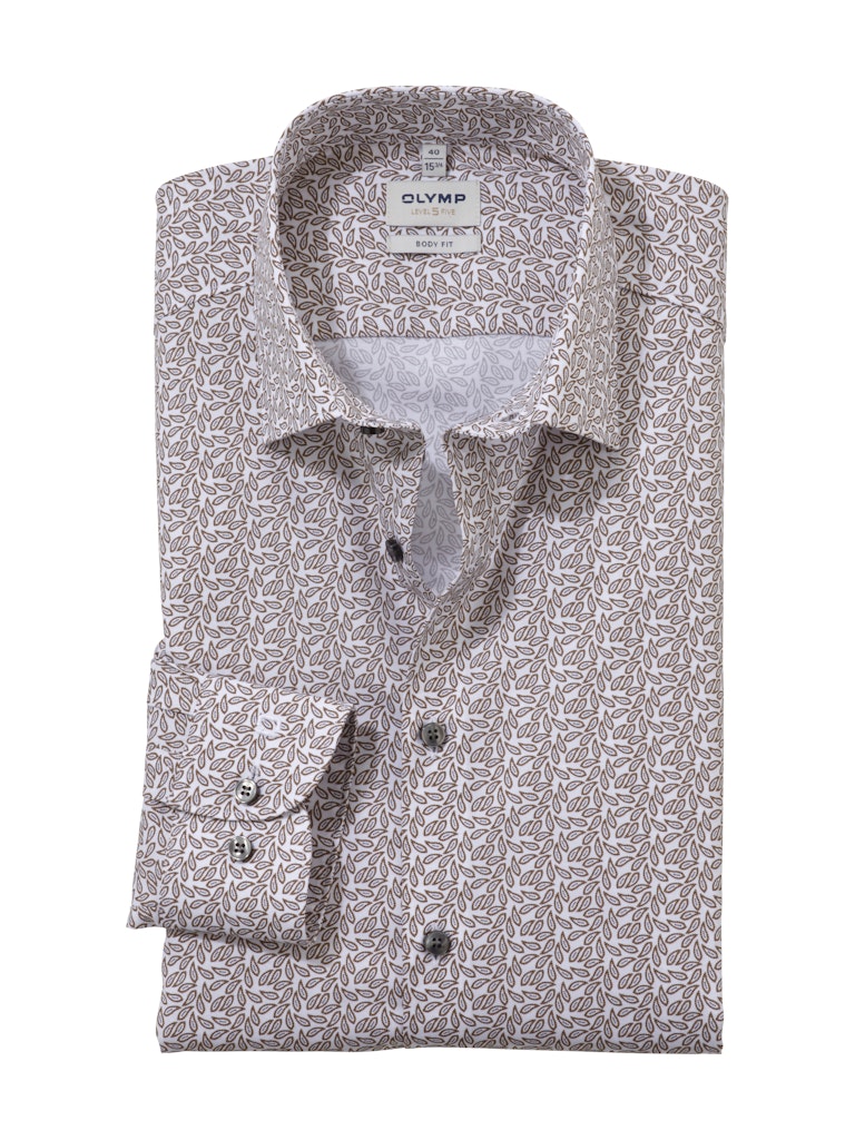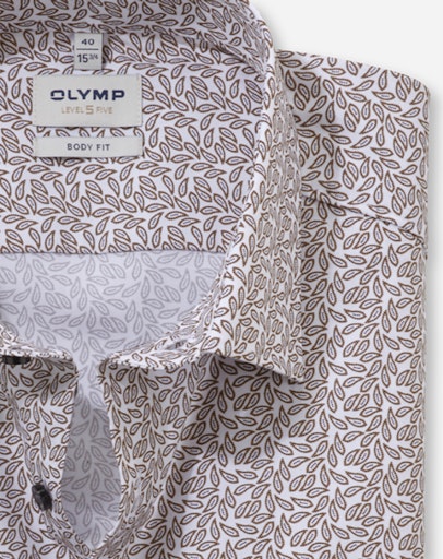 Das körperbetonte OLYMP Level Five begeistert mit einer Paisley-Neuinterpretation. Die feine Garnmischung aus Baumwoll- und Stretch-Fasern sorgt für nachhaltige Bestform, den angenehmen Tragekomfort und Bügelleichtigkeit. Innovativer New York Kent und der lässig gerundete Saum harmonieren perfekt.