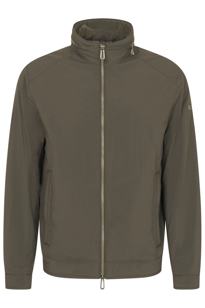 Moderner Blouson mit Stehkragen und Leistentaschen mit Reißverschluss. Seitlichen Strickeinsätzen im Saum. Die sportliche Vollfütterung setzt Akzente nach Innen. Der Artikel überzeugt mit seinem Griff und ist gleichzeitig wasserabweisend und PFC frei.