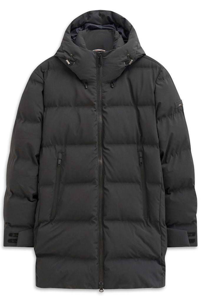 Moderner Parka mit verklebter Steppoptik und angeschnittener Kapuze sowie langen Reißverschlusstaschen. Gefüllt mit Sorona Fasern. Innen ein ganzes Futter mit Innentaschen. Der Artikel mit stretch ist zu 100% recycelt und ist wasserfest (5000mmH2O), windundurchlässig, atmungsaktiv und ist PFC frei.