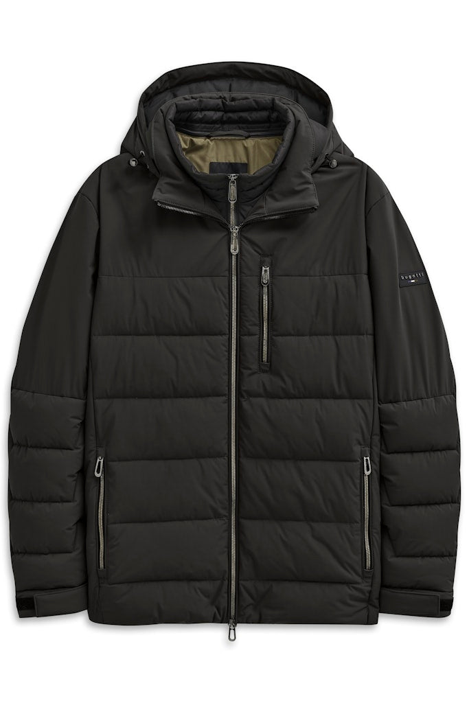 Sportliche Jacke mit moderner Steppoptik im Vorderteil und an den Ärmel. Die Jacke hat eine Sorona-Füllung. Stehkragen mit abtrennbarer Kapuze sowie heraustrennbarem Westenfake. Senkrechte Reißverschlusstaschen in der Seite sowie eine an der Brust. Innen ein ganzes Futter mit Flexcity-Einsätzen im Rücken und Innentaschen. Der Artikel mit stretch-Funktion ist wasserabweisend und PFC frei.