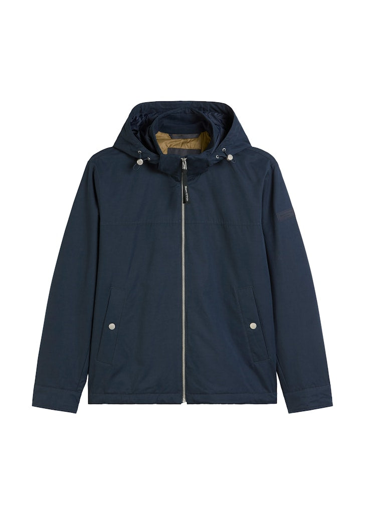 Lässiger Style trifft Funktion: Dieser Blouson im Regular Fit kommt aus wasserabweisendem Technical Poly Cotton – recyceltes Polyester trifft Bio-Baumwolle. Mit Kapuze samt elastischem Kordelzug, Rippstrickkragen innen am Stehkragen, Druckknopfmanschetten und sportlichem Reißverschluss. Die kontrastfarbene Innenseite setzt ein optisches Highlight. Seitliche Taschen mit Druckknopf und verstellbarer Saum mit elastischem Kordelzug – ready für jede Wetterlage.