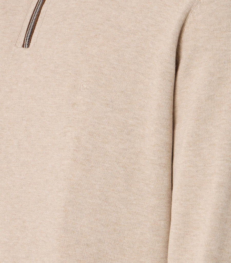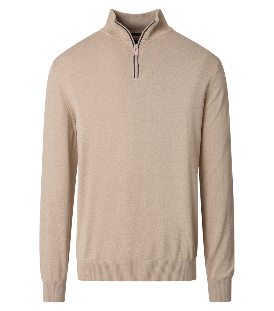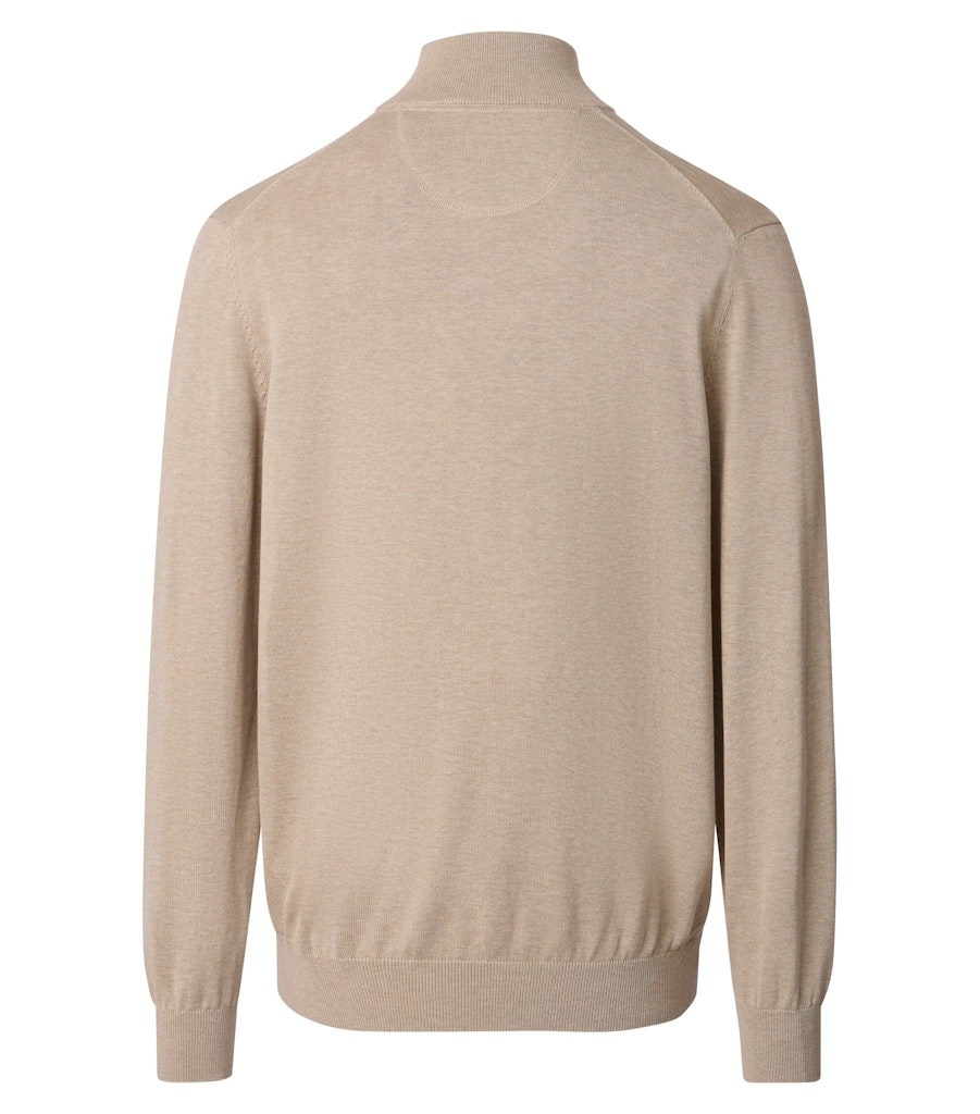 Dieser Strick-Troyer überzeugt mit zeitloser Eleganz und angenehmer Wärme. Die feine Strickstruktur sorgt für eine edle Optik, während der hohe Kragen mit Reißverschluss für einen modernen Touch sorgt. Ob über einem Hemd oder solo getragen – dieser Troyer ist ideal für stilbewusste Looks an kühleren Tagen.