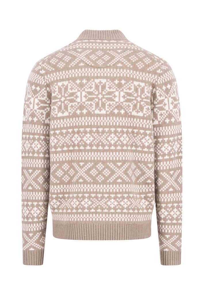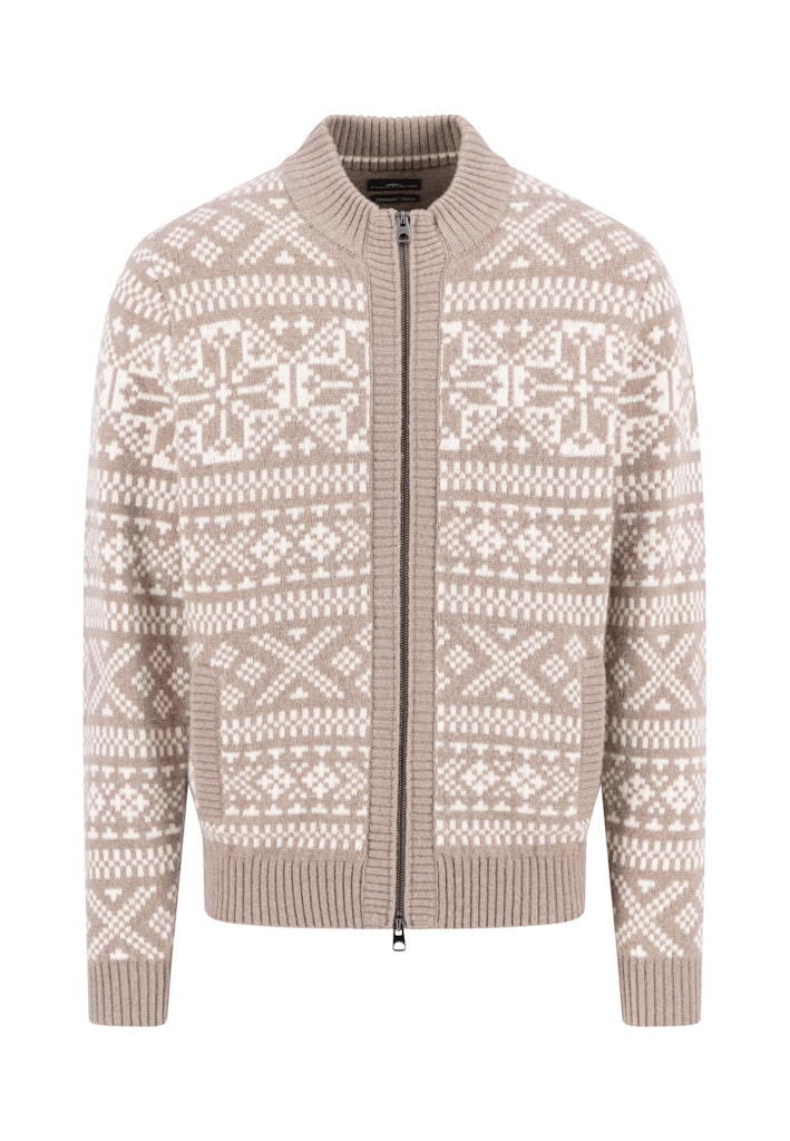 Fynch-Hatton / He.Strickjacke, -weste / Zip Stand-Up Cardigan, Big Jacquard / 864 taupe / L