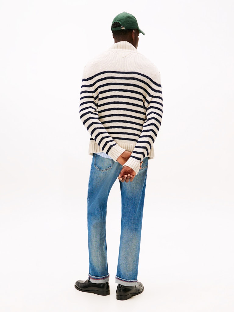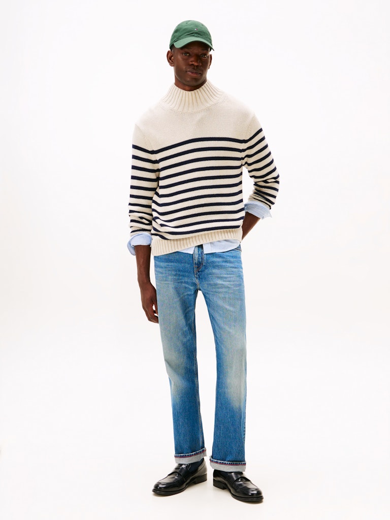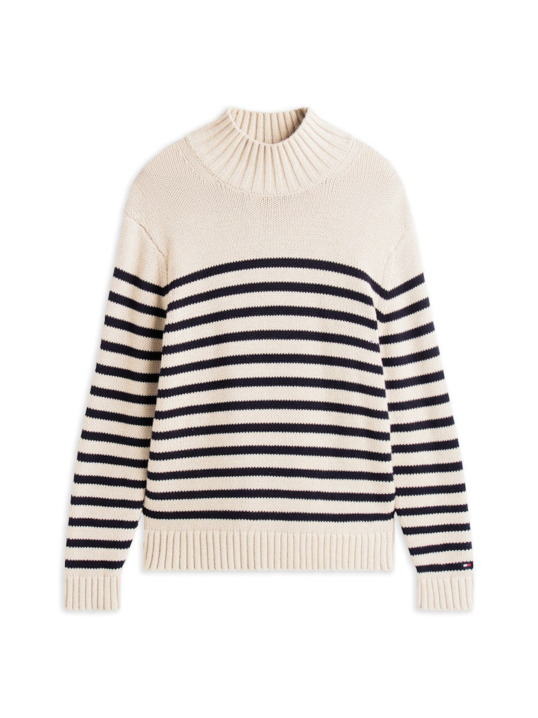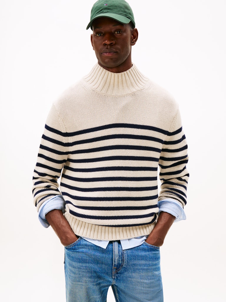 TOMMY HILFIGER / He.Pullover / BRETON COTTON STRIPE MOCK NECK / 0BP BROWN / XXL