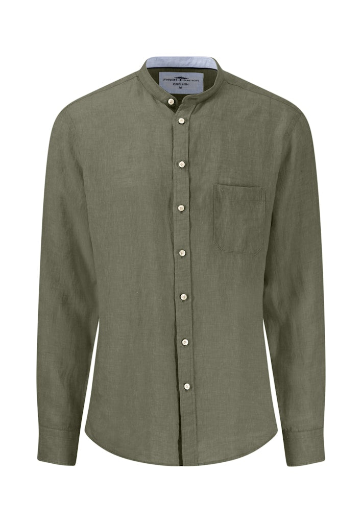 Fynch-Hatton / He.Hemd langarm / Premium Linen, Stand-Up, 1/1 / 729 olive / L