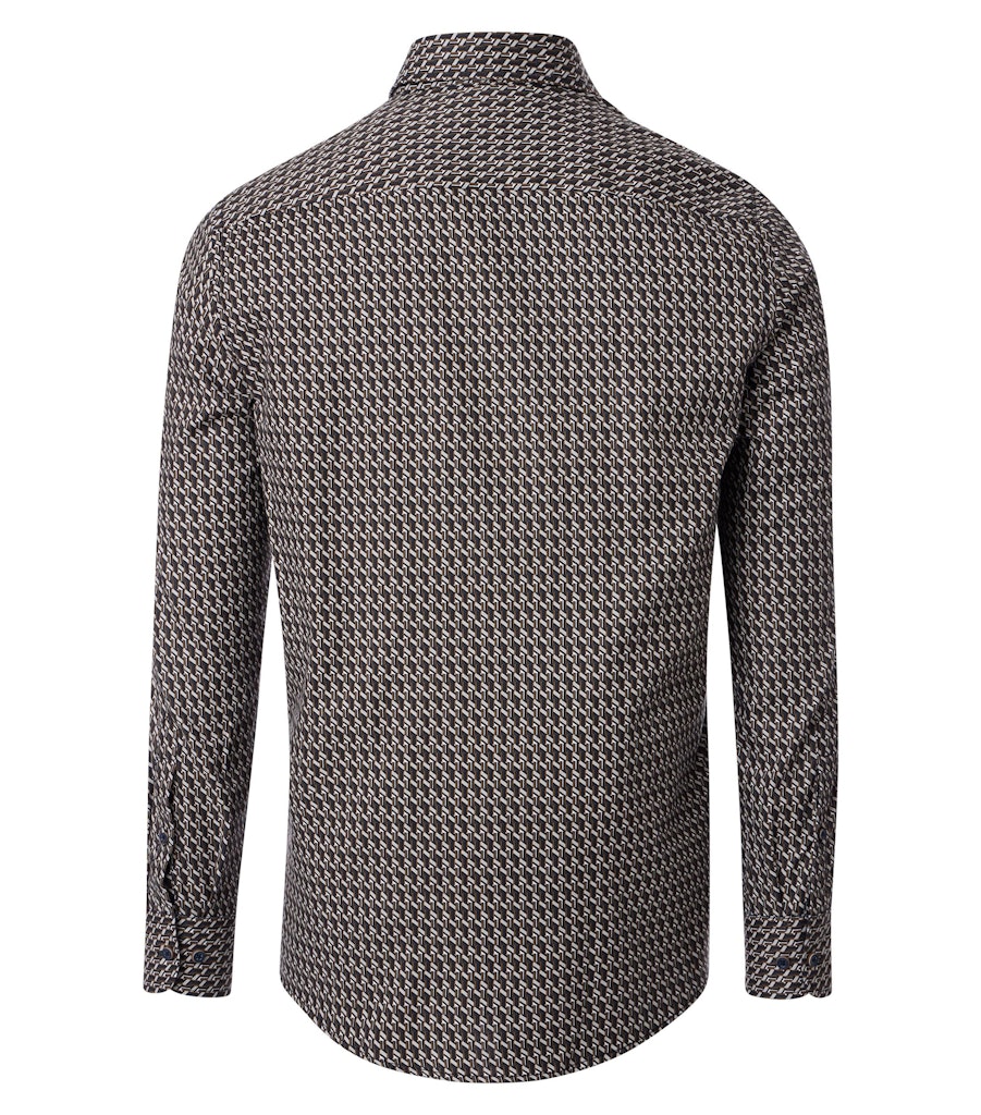 Durch die legere Schnittführung und dem reinen Baumwollgewebe überzeugt dieses modische Freizeithemd mit seinen angenehmen Trageeigenschaften. Das stylische Modell zeigt sich mit einem modischen Print und erweist sich im Alltag als perfekter Begleiter für den modebewussten Mann. Kombinieren Sie es bequem mit einer Jeans oder Chinohose und starten Sie modisch in den Tag.