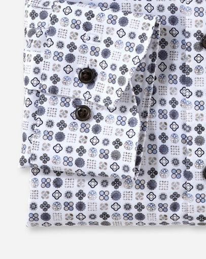 Das smarte Grafik-Muster in pixelscharfer Qualität bringt modische Abwechslung in den Office-Look. Die angenehm kühl wirkende und glatte Baumwoll-Textur zeichnet dieses OLYMP Luxor modern fit Businesshemd aus. Es ist körperbetont geschnitten und mit einem modischen Global Kent vollendet. Zeitsparend bügelfrei.