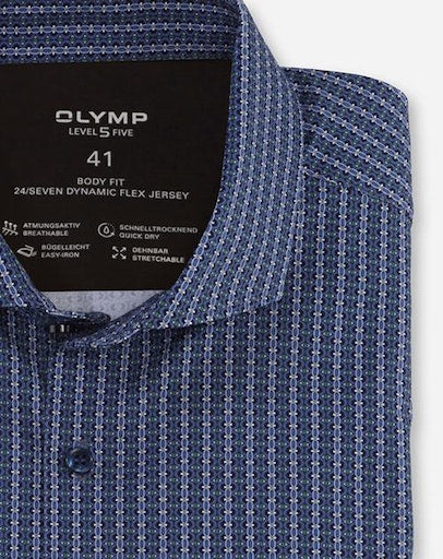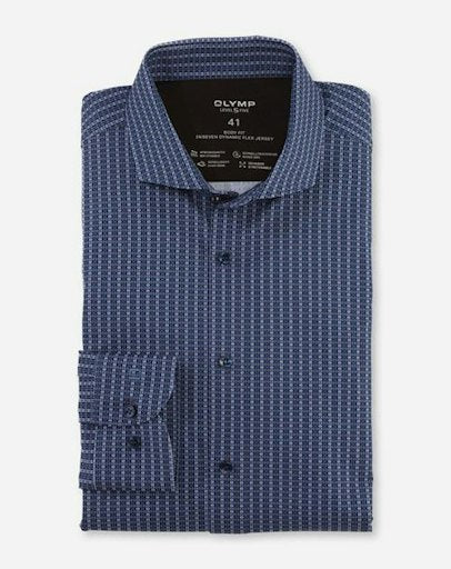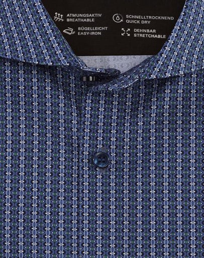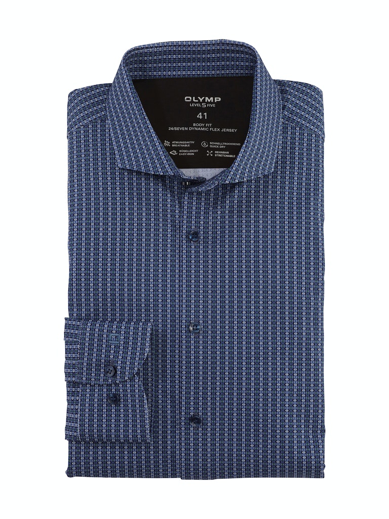 Feine, aber leistungsstarke Garnausspinnungen kennzeichnen die OLYMP Level Five Business-Jerseys. Atmungsaktivität, Formstabilität und Dehnbarkeit fusionieren mit seriöser Ästhetik und raffinierten Prints. Das Material aus Baumwolle mit geringem Elasthananteil performed mit selbstbewusstem Haifischkragen, körperbetontem Body-Fit und pixelscharfem Minimal-Print. Schnelltrocknend und bügelleicht.