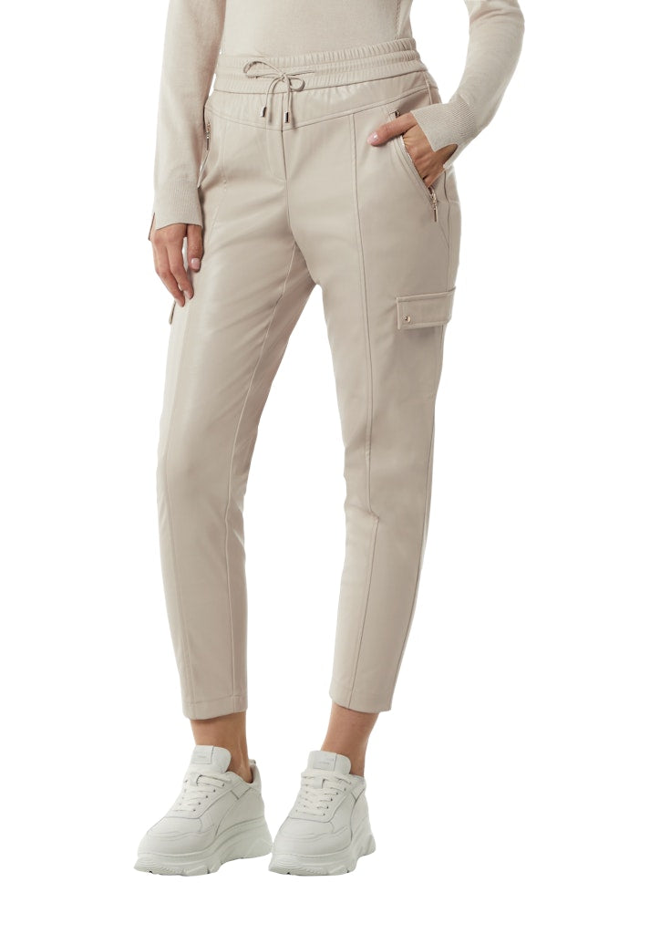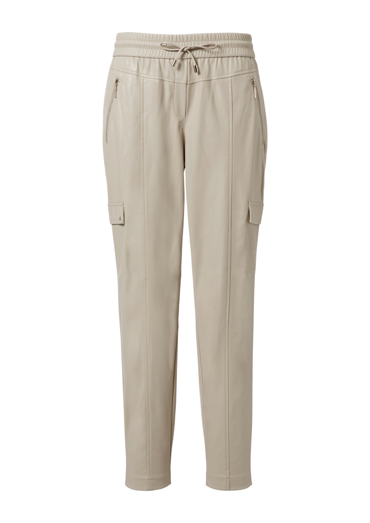 Lässige Coolness trifft auf edlen Chic: Diese 7/8-Schlupfhose in Lederoptik vereint Komfort und Style. Der Relaxed Fit mit Tapered Leg schmeichelt Ihrer Silhouette, während die Mid Rise eine moderne Passform garantiert. Praktische Cargotaschen und Reißverschlusstaschen bieten Platz für Essentials. Perfekt für einen casual-eleganten Look, den Sie mit Sneakers oder Heels individuell stylen können.
