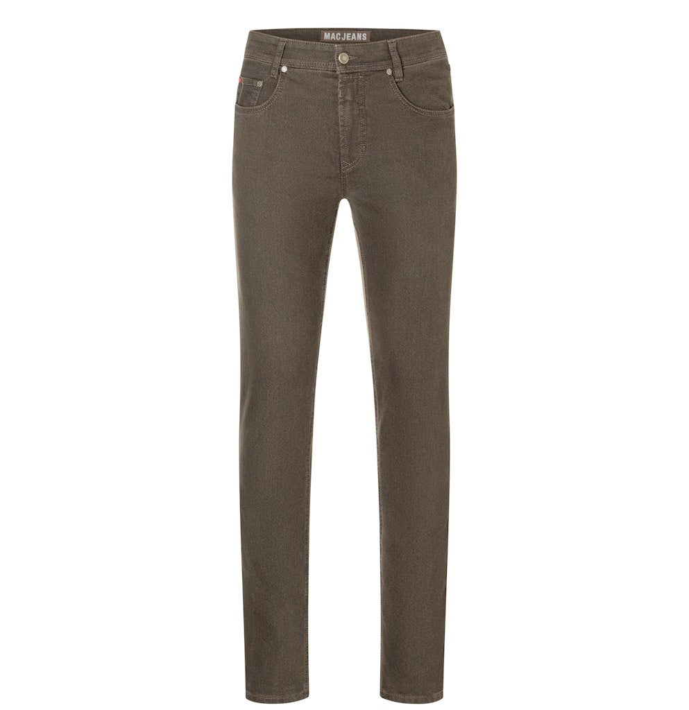 Modern Fit, gerades, schmales Bein, gemäßigte, bequeme Leibhöhe, Five Pocket, Jogn Jeans-Modell, Printed Sweat, hochwertige Light Sweat Denim-Qualität, dezenter, klassischer Print, leicht im Gewicht, angenehm weicher Griff, hoher Tragekomfort, authentische Optik, hohe Formstabilität, pflegeleicht, Das Model ist 1,85m groß und trägt die MAC Bundweite 33 und Länge 32, Fußweite bei Größe 33: 37cm
