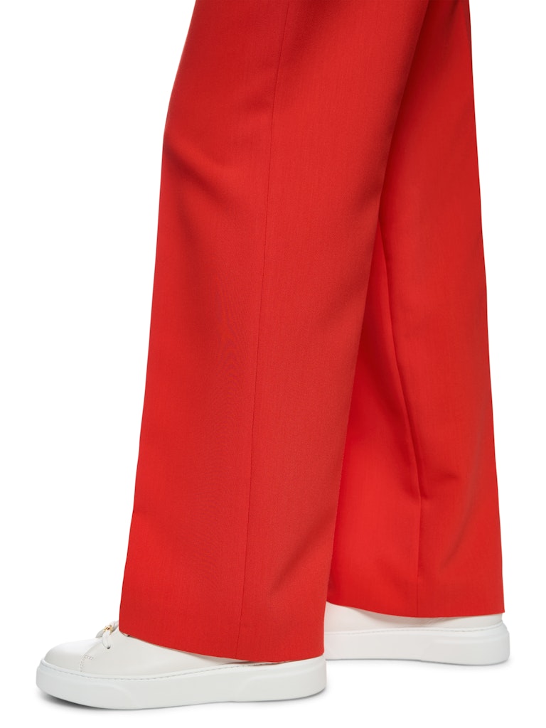 Die Hose WUKARI mit Viskose und recyceltem Polyester präsentiert sich mit modernem Design. Im Wide Fit mit hohem Bund und eleganten Bügelfalten sorgt sie für eine stilvolle Silhouette. Schräg stehende Eingrifftaschen bieten praktische Details, während Knopf und Reißverschluss einen klassischen Abschluss bilden.