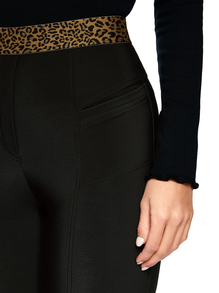 Hose Modell SOFIA in 7/8-Länge mit enganliegendem Beim. Der bequeme Schlupfbund ist im Leodessin abgesetzt. Die Beinmitte ziert längs eine Naht, seitliche aufgenähte Taschen ergänzen. Modern, komfortabel und figurbetont.