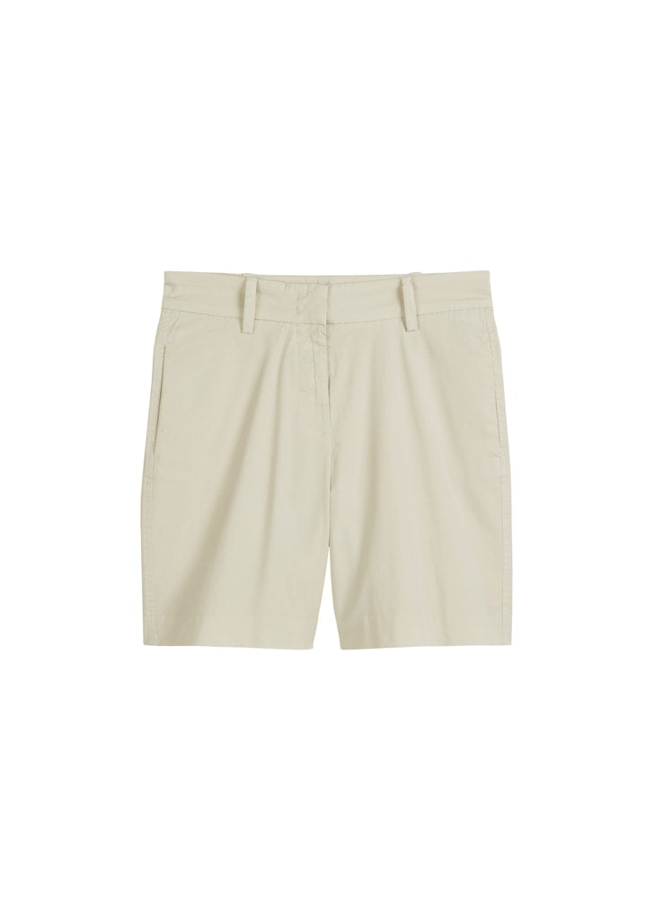 Kann alles, von elegant bis sportlich - das Styling entscheidet: Lässige, clean designte Shorts in feiner, elastischer Twill-Qualität aus hochwertigem Organic Cotton Mix. Modell mit klassisch breitem Bund, verdecktem Haken- und Reißverschluss, seitlichen Eingrifftaschen vorne und einer Paspeltasche am Gesäß. Passform: fitted mit normaler Leibhöhe und kurzem Bein.