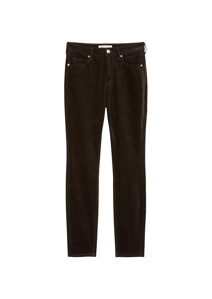 Die Samthose - Model Alkea slim - ist aus einem hochwertigen Baumwoll-Viskose-Elasthan-Gemisch mit extra weichem Griff gefertigt. Sie hat eine feminine Slim Fit-Passform mit hoher Taille und normaler Beinlänge. Die lässige Stoffauswahl macht sie zu einem kombinationsstarken Teil, das sich perfekt in jede gut sortierte Garderobe einfügt. Klassischer Five-Pocket-Style mit modelltypischen Eigenschaften. Office-tauglich wird die Hose mit weißer Bluse, kleinem Jersey-Blazer und eleganten Slippern.