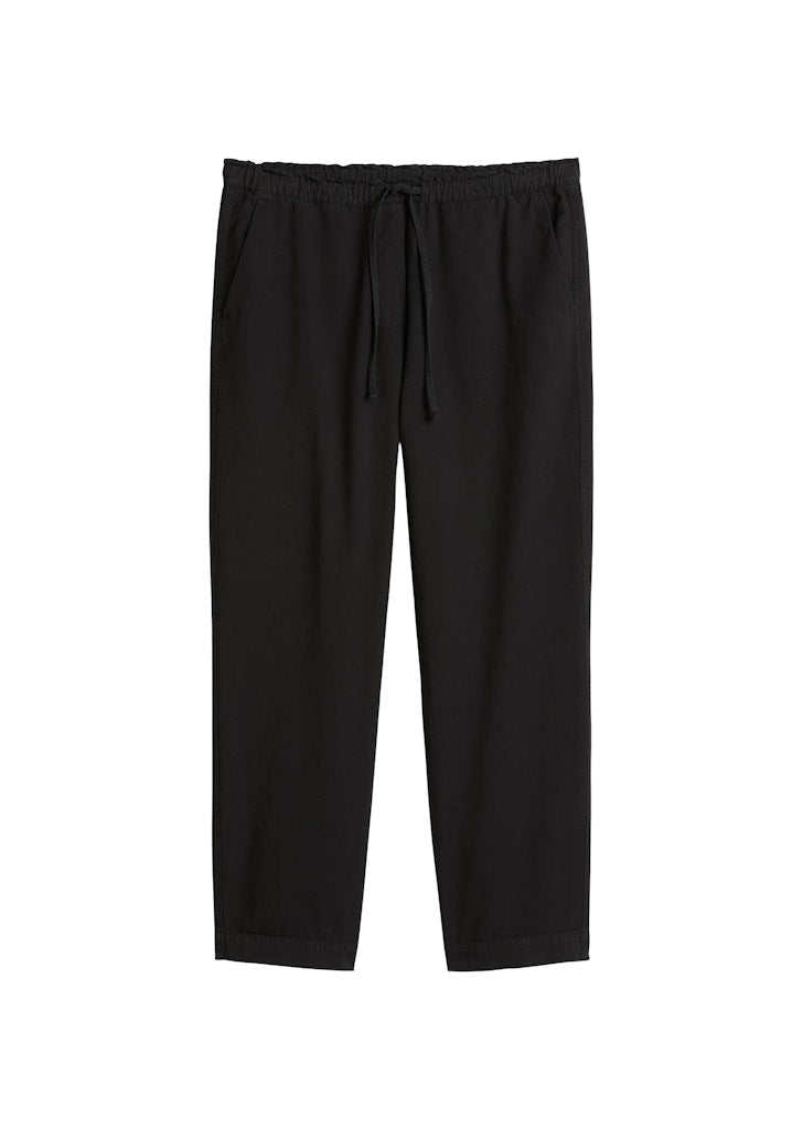 Leicht, wandelbar, chic und sportlich: Die lässige Hose aus Baumwolle-Leinen-Mix gehört zu den modernen Klassikern im Kleiderschrank. Sie ist stylisch, luftig, immer chic und einfach der perfekte Begleiter für die kommenden warmen Monate. Die Hose kommt im lässigen Tapered Fit und hat einen markanten, gerafften und elastischen Bund mit normaler Leibhöhe und Kordelzug, zwei praktische, schmale Eingrifftaschen vorne und eine schmale Paspeltasche auf dem Gesäß.