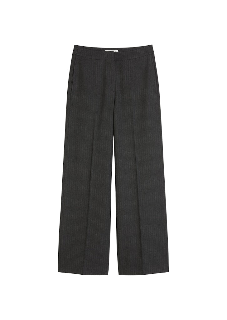 Nicht zu lang, nicht zu kurz, nicht zu weit, nicht zu eng – eine neue Hosenform erobert die Modewelt: die Long-Leg-Culotte in attraktiver Knöchellänge. Sie ist die perfekte Hose für elegante Office-Styles und lässige Alltagsoutfits. Die Taille sitzt eng, nach unten hin wird das Bein lockerer. Geschlossen wird die Hose mit einem cleanen Bund und einem verdeckten Haken- und Reißverschluss. Sie verfügt über seitliche Naht-Eingrifftaschen und eine Paspeltasche auf dem Gesäß. In Kombination mit einem schlichten Strickpullover und klassischen Boots entsteht ein schöner Casual-Look. Das Dessin-Material ist ein sehr weicher, angerauter Flanell aus einer Mischung aus recyceltem Polyester, geschmeidiger Viskose und dehnbarem Elasthan. Und zeigt sich entweder mit feinen Nadelstreifen oder Herrinbone-Muster.