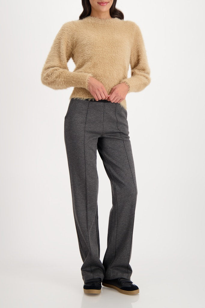Oberstoff: 55% Polyester, 38% Viskose, 7% Elasthan; Bündchen: 80% Polyester, 20% Elasthan