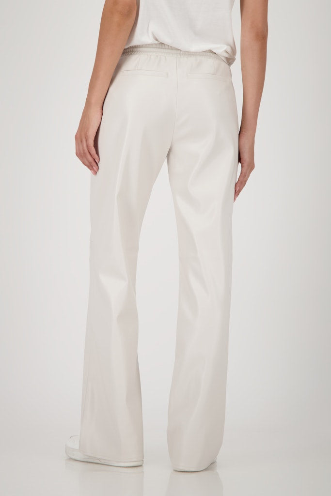 Modische Hose in Lederoptik mit Straight-Leg Schnitt. Der elastische Bund mit Bindeband und praktischen Seitentaschen sorgen für einen modernen, komfortablen Look.