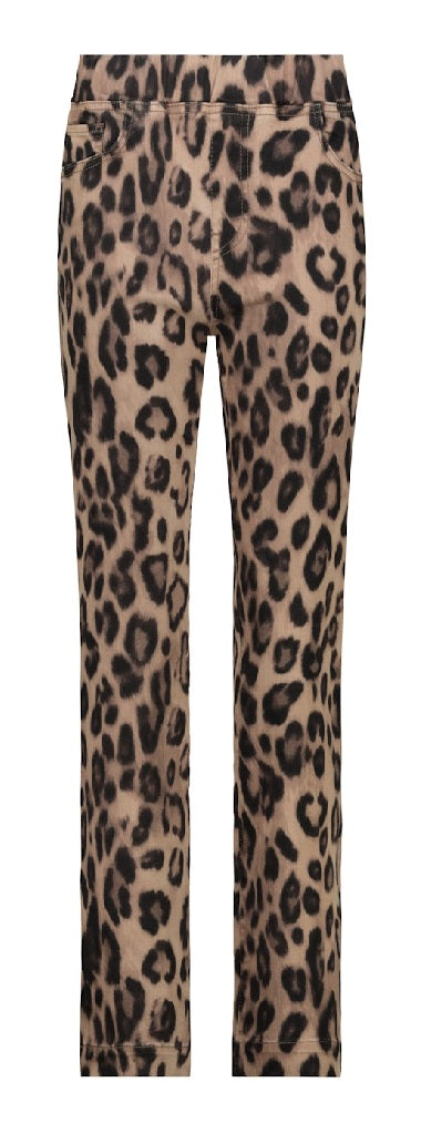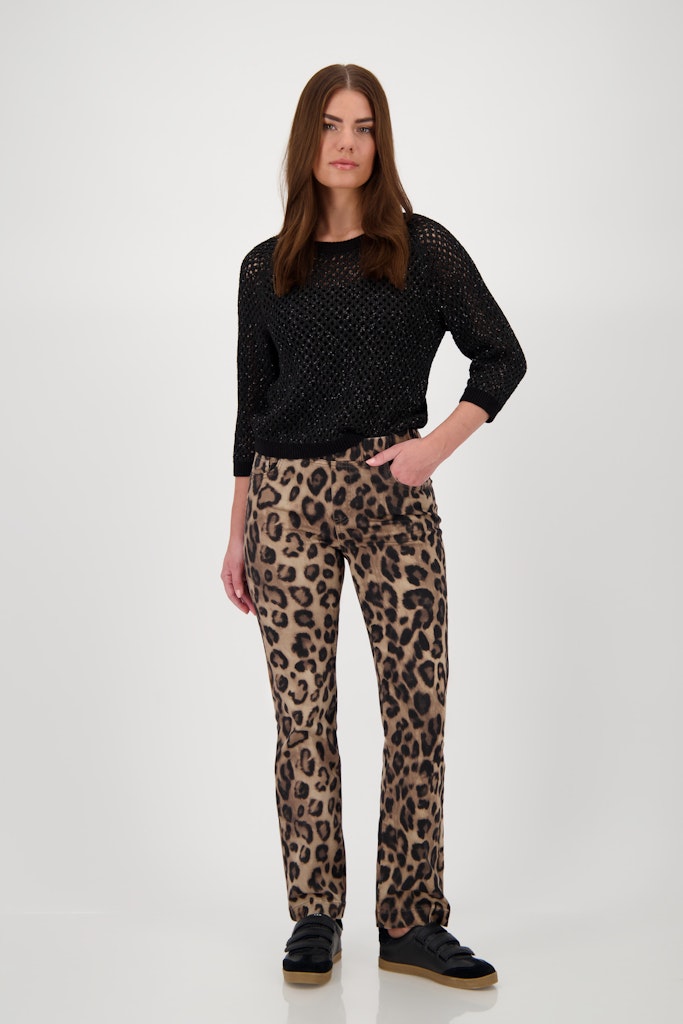 Hose aus Baumwollmischung mit elastischem Material und Leopardenmuster, Straight Leg, elastischem Bund und verkürzter ⅞-Länge – stylisch und komfortabel.
