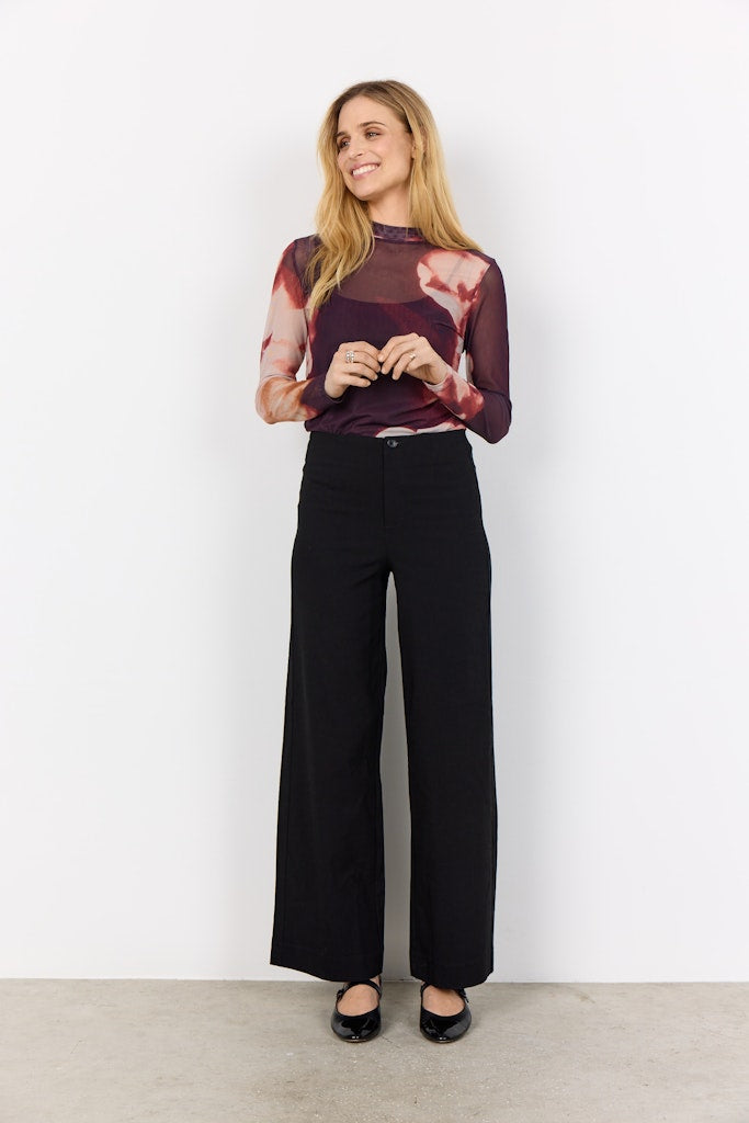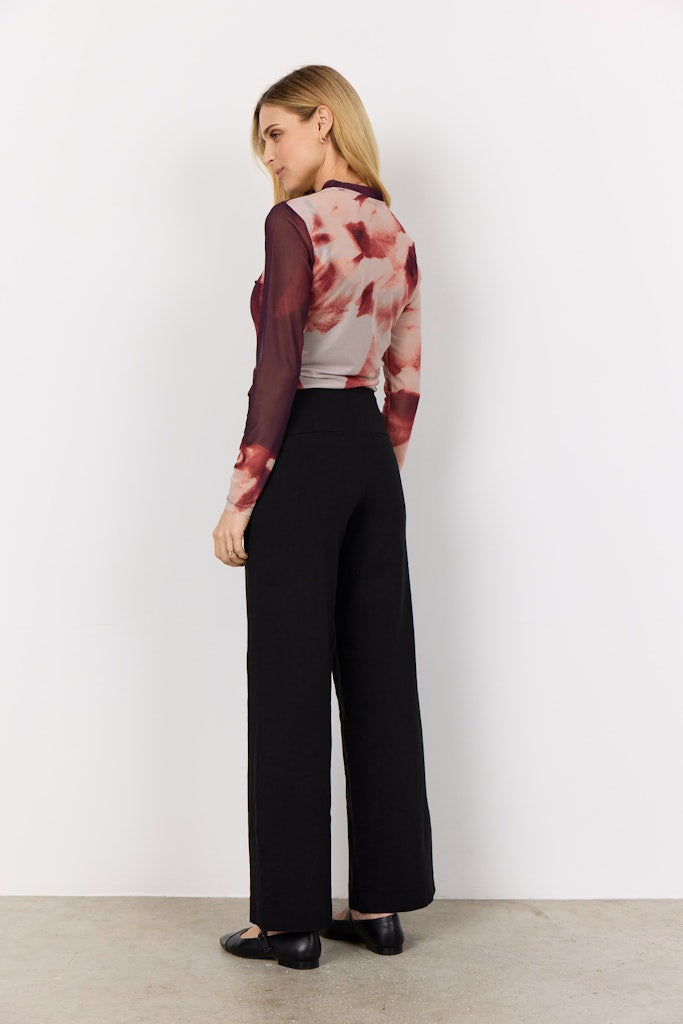 SC-Lilly 51-C ist eine klassische Hose aus einer schönen Mischqualität. Die Hose hat eine hohe Taille, ein weites Bein und einen Hosenschlitz mit Reißverschluss. Stylen Sie sie mit einem übergroßen Hemd und ein paar Stiefeln für einen schönen Look.