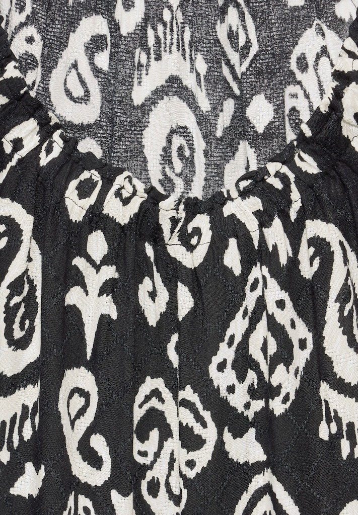 Die Carmen Bluse für Damen von CECIL ist eine bezaubernde Sommerbluse mit einem elastisch gerafften Ausschnitt und kurzen Ärmeln. Das Ornament Muster verleiht ihr eine verspielte Note, während die Möglichkeit besteht, sie auch schulterfrei zu tragen, für zusätzliche Vielseitigkeit und Stil. Sommerbluse Elastisch geraffter Ausschnitt Kurzarm Ornament Muster Carmen Look Material: 100% Viskose