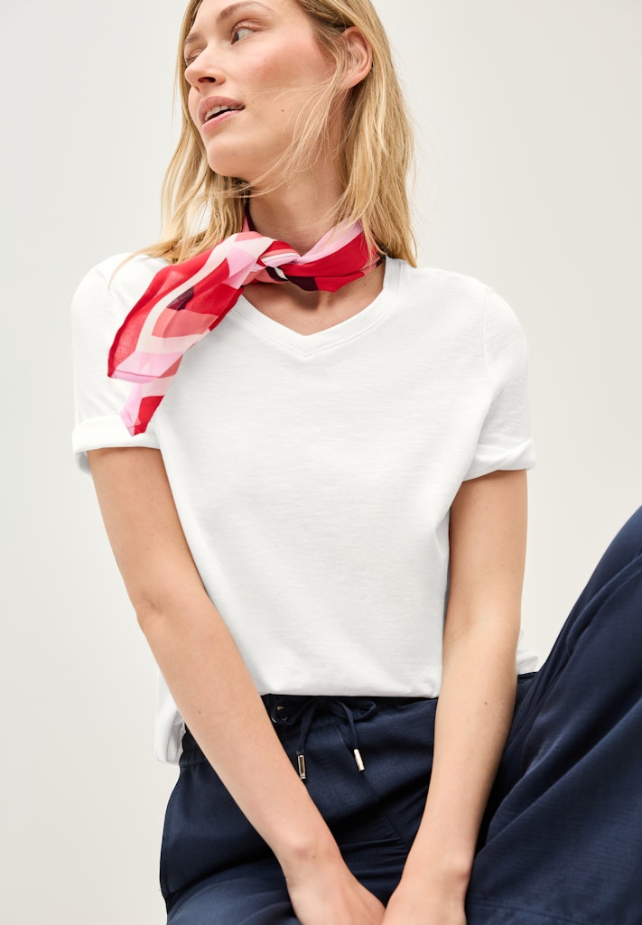 Dieses unifarbene T-Shirt von CECIL für Damen ist ein vielseitiger Allrounder mit V-Ausschnitt und kurzen Ärmeln. Die reine Baumwolle sorgt für angenehmen Tragekomfort. Ein zeitloses Basic für deinen Kleiderschrank. T-Shirt V-Ausschnitt Kurzarm Unifarbe Reine Baumwolle Material: 100% Baumwolle