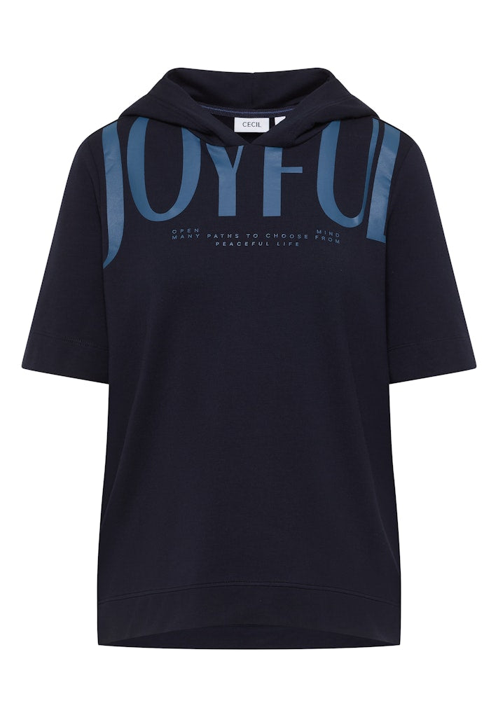 Dieses Kapuzenshirt von CECIL für Damen kombiniert sportiven Stil mit modischem Wording Artwork. Seitliche Schlitze sorgen für einen lässigen Fall, während der Baumwoll-Modalmix mit Stretchanteil sich angenehm anfühlt. Der Kurzarm rundet das Design für warme Tage perfekt ab. Kurzarmshirt Kapuze Wording Artwork Seitliche Schlitze Baumwoll-Modalmix mit Stretchanteil Material: 48% Baumwolle, 48% Modal, 4% Elasthan