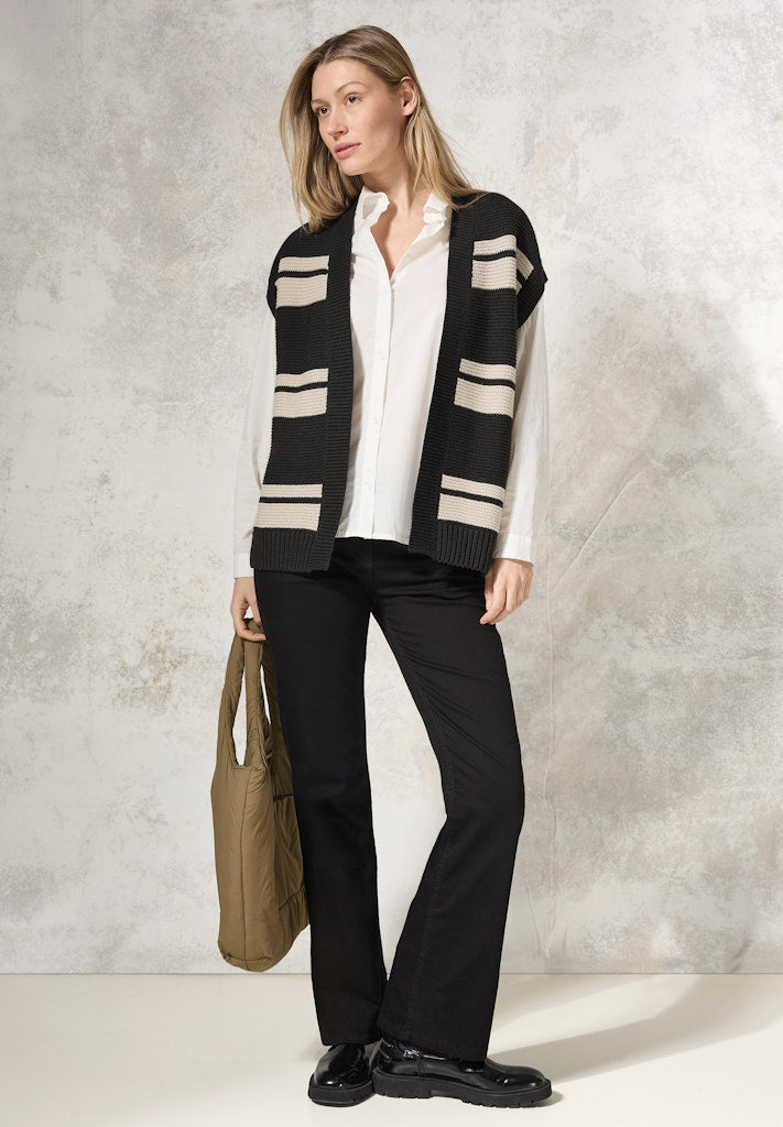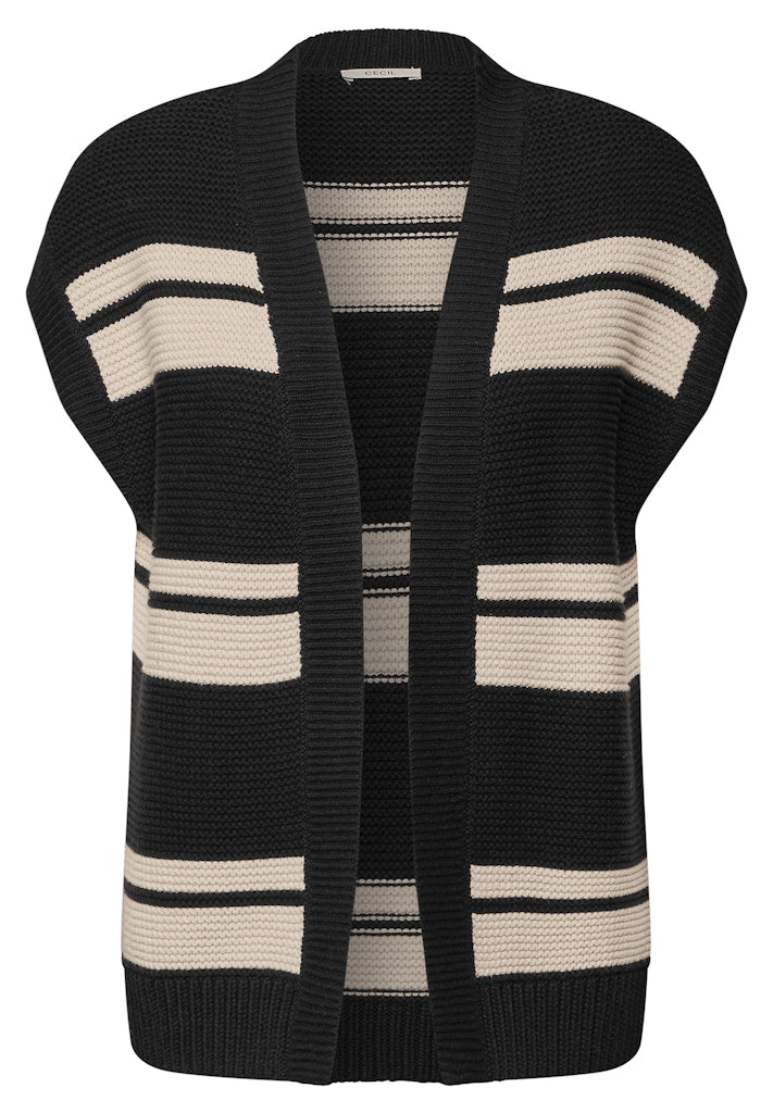 Die grob gestrickte Weste von CECIL für Damen begeistert mit ihrem markanten Streifenmuster und lässt sich offen tragen. Der angenehme Baumwollmix macht sie zur idealen Begleitung für entspannte Lagenlooks. Grobstrick-Weste Offen zu tragen Streifenmuster Angenehmer Baumwollmix Material: 60% Baumwolle, 40% Polyacryl