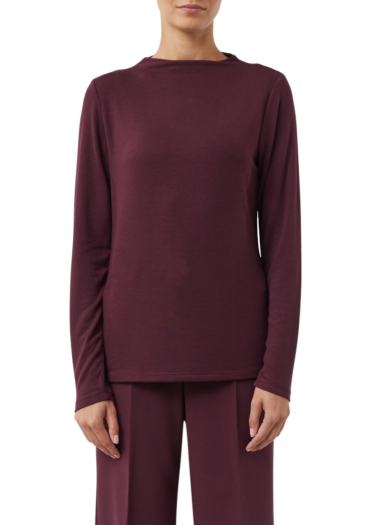 Elegante Lässigkeit trifft auf zeitlosen Komfort: Dieses Langarmshirt im Regular Fit überzeugt durch seinen markanten Stehkragen und die hochwertige Jersey-Qualität aus Viskosemix. Der cleane Look macht es zu einem vielseitigen Basicpiece, das Sie sowohl casual als auch business-tauglich stylen können. Ein Must-have für moderne Outfits mit stilvollem Twist.