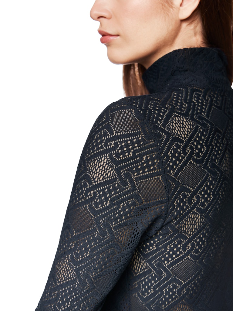 Das Longsleeve ist schmal geschnitten und aus stretchigem Material gefertigt für besten Tragekomfort. Die Logospitze sorgt für einen sportlichen und trotzdem femininen Look. Der kleine Stehkragen ergänzt das Design.