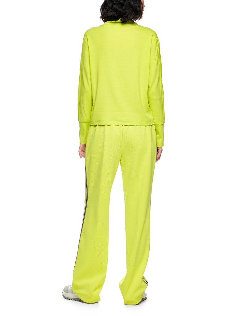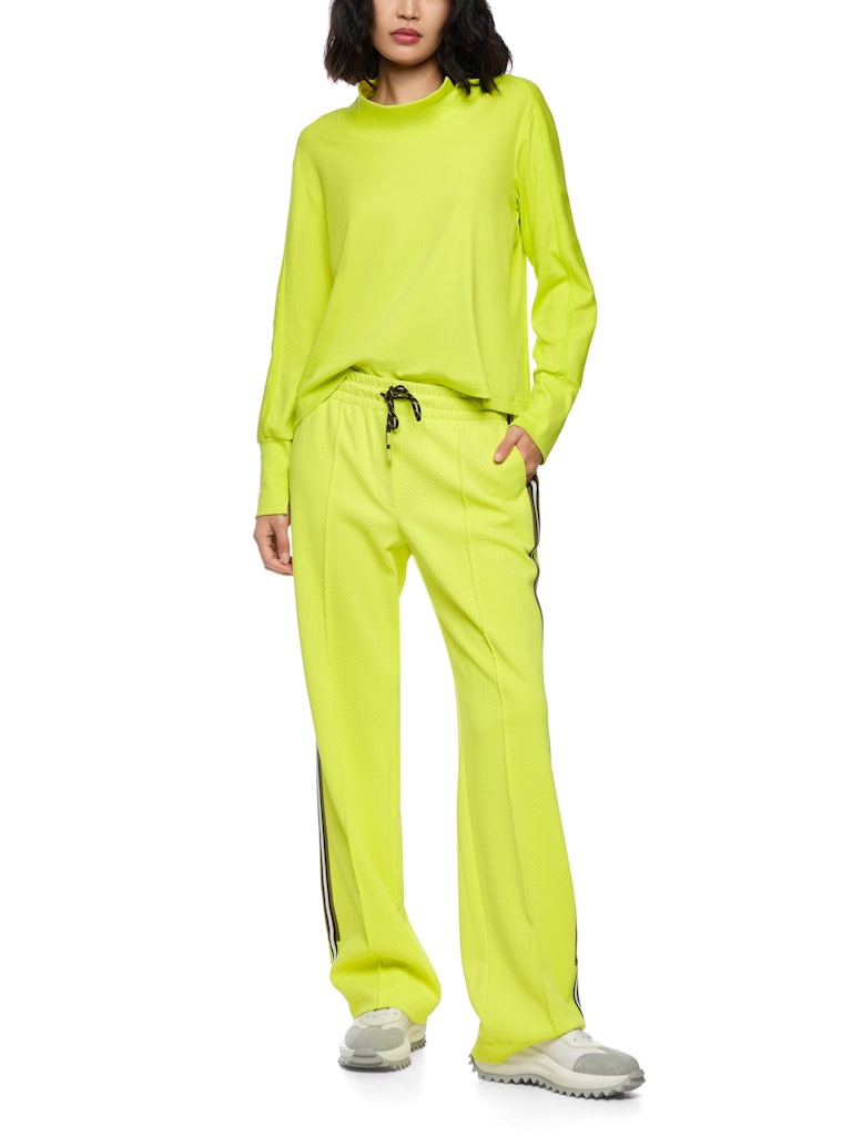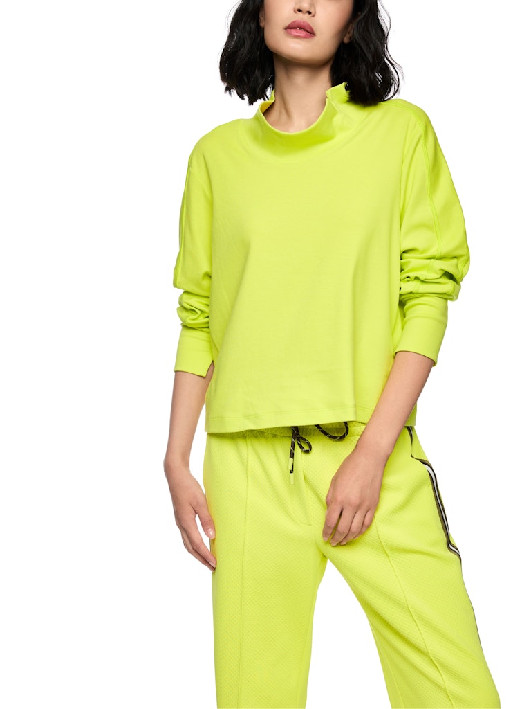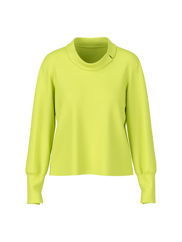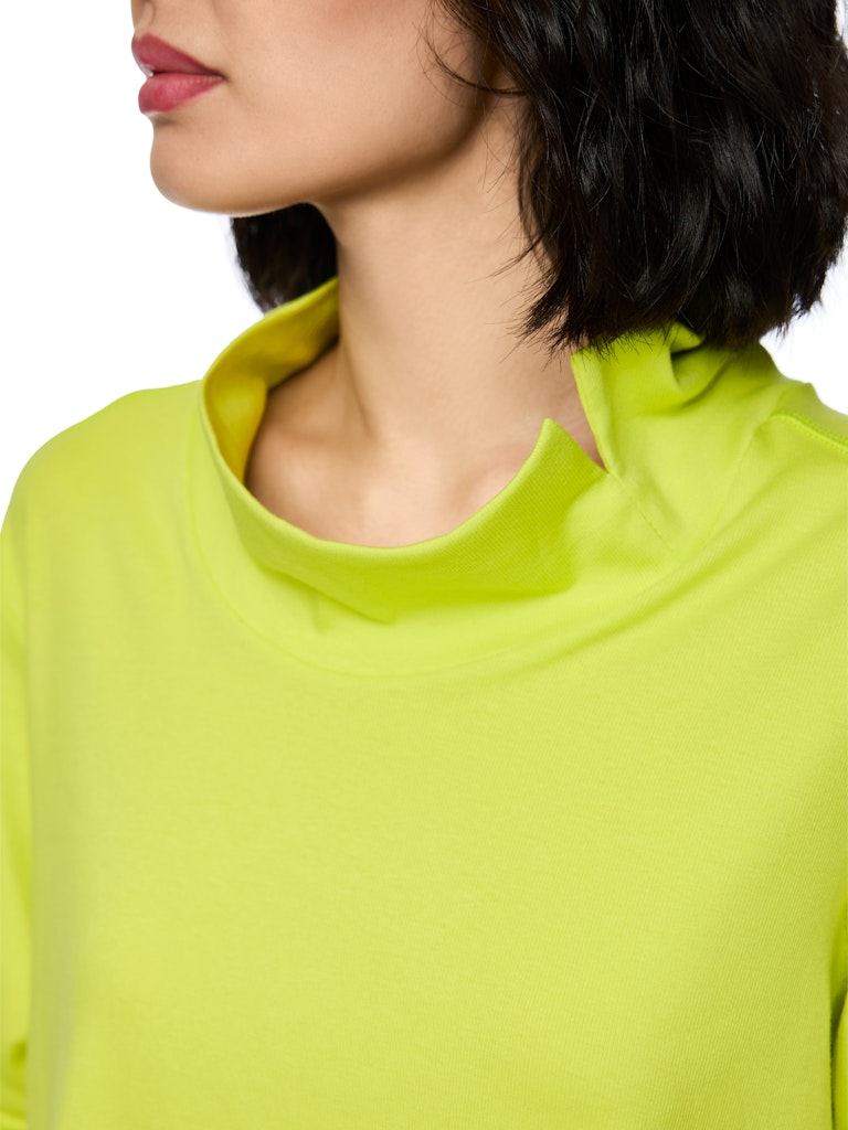 Das Modell ist aus stretchigem Baumwoll-Jersey und gerade geschnitten. Der Ärmelsaum ist geschlitzt und kann effektvoll umgeschlagen werden. Eyecatcher ist der weite Rundhalskragen, der lässig umgeklappt getragen wird, dank Schlitz in der Mitte.