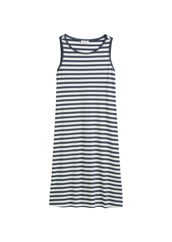 Unkompliziert, zeitlos und stilsicher: das Kleid mit klassischem Ringel-Dessin. In lockerer A-Linie geschnitten mit dekorativen Flatlock-Nähten mittig auf Vorder- und Rückenteil. Rundhalsausschnitt und Armloch sind mit einer feinen Web-Qualität abgesetzt. Aus softer, angenehmer Baumwoll-Modal-Mix-Qualität mit Elasthan-Anteil.