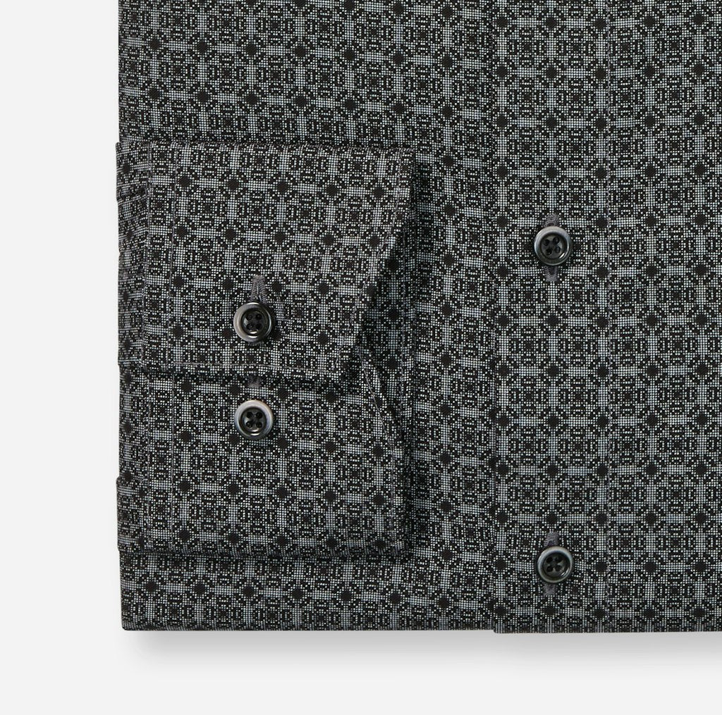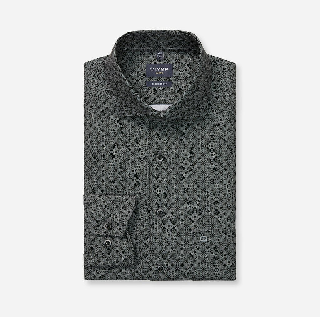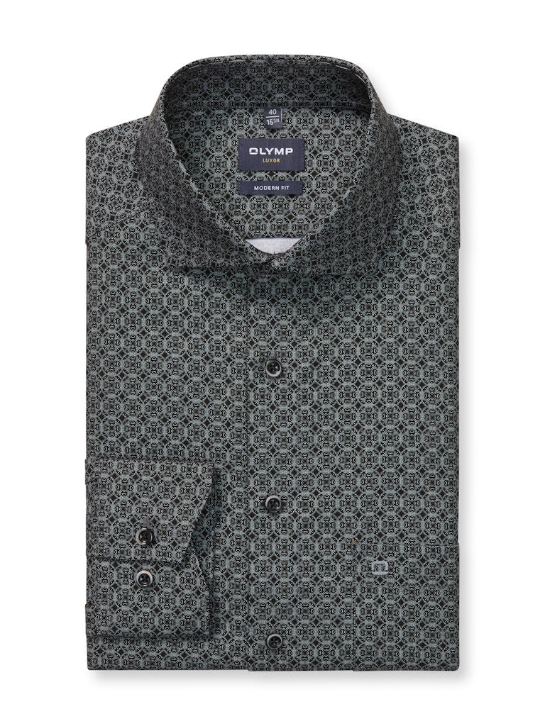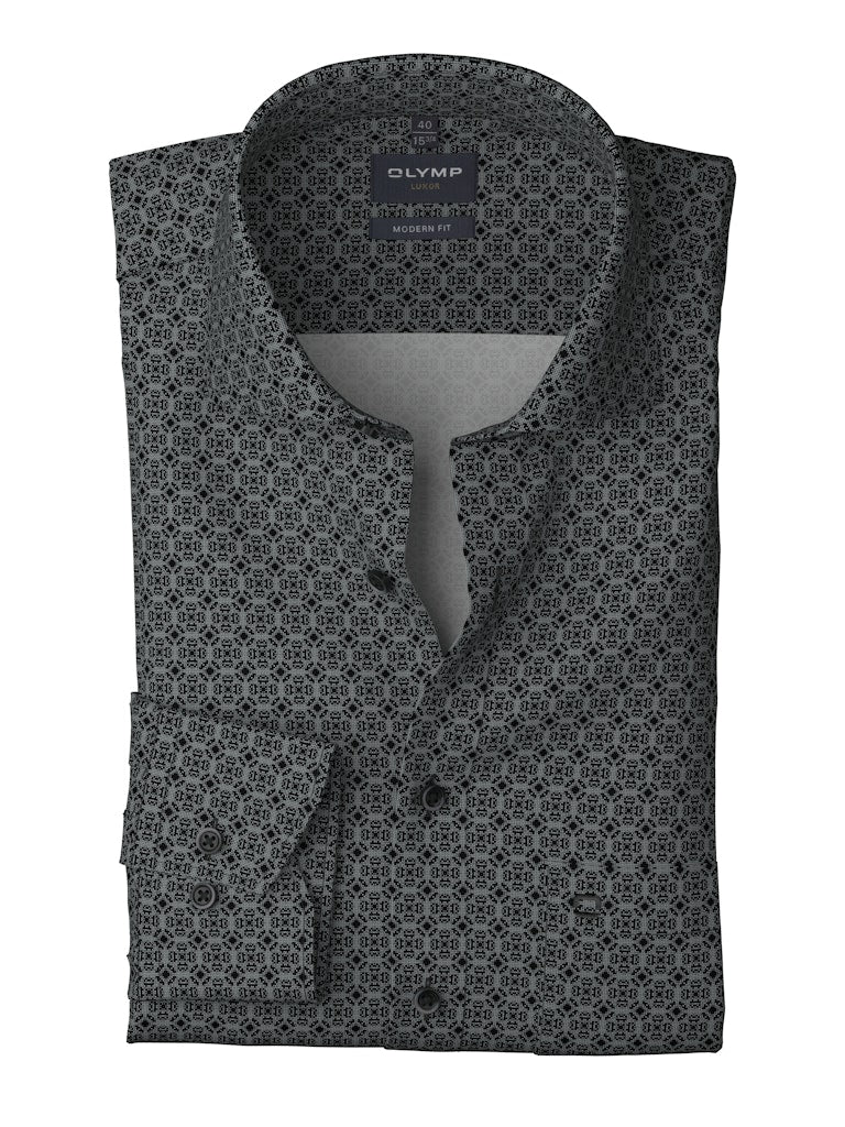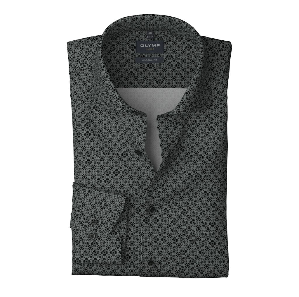 Edel schimmerndes Jacquard-Gewebe aus 100 Prozent Baumwolle – das körpernahe OLYMP Luxor Businesshemd begeistert mit attraktiven Struktureffekten und angenehmen Trageeigenschaften. Die feinen Garne sind hautsympathisch, atmungsaktiv, natürlich dehnbar und bügelfrei. Elegant vollendet mit markantem Royal Kent.