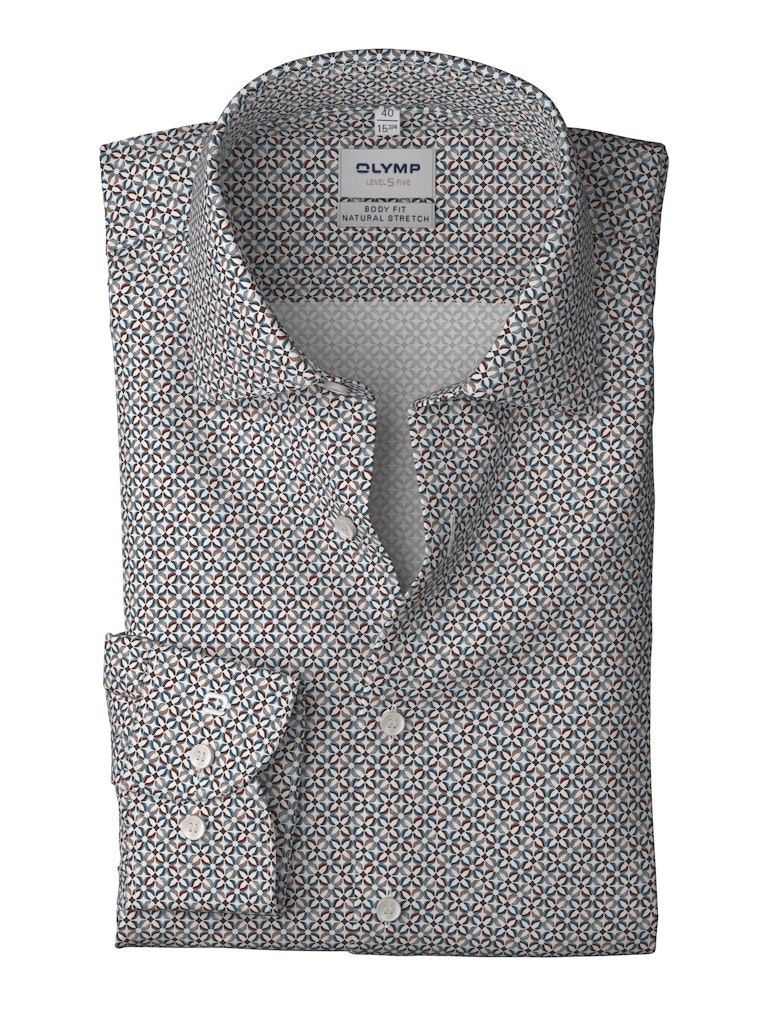 Sympathische Musterunterbrechung im Office. Das OLYMP Level Five für sportaffine Businessmänner bietet stilvolle Performance in körperbetonter Linie. Natürlich dehnbare Baumwollgarne sorgen für knitterfreie Bestform und hautsympathisches Tragegefühl. Der modische New York Kent harmoniert zum lässig gerundeten Saum. Besonders bügelleicht.