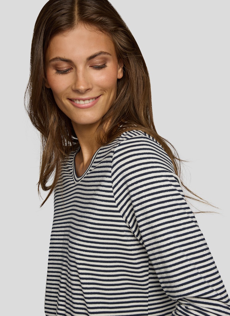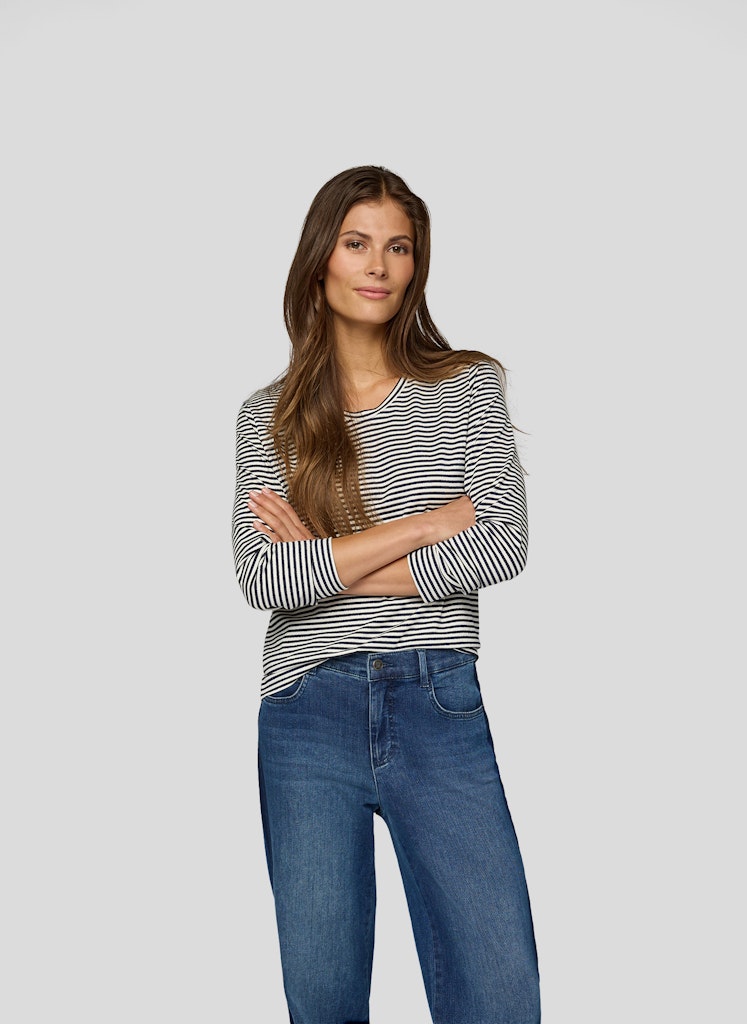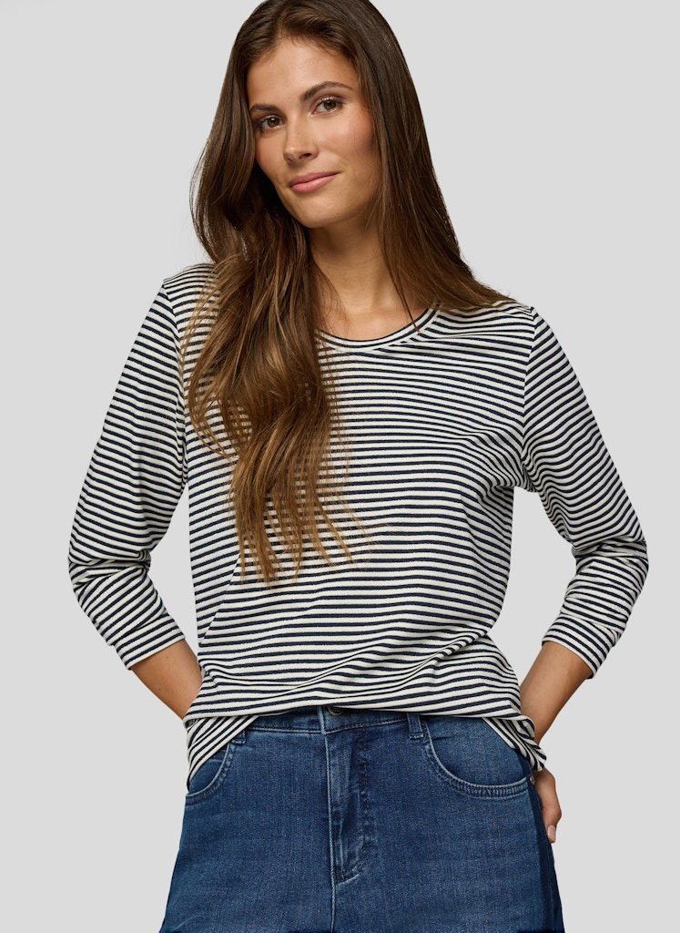 Dieses Shirt begeistert mit seinem klassischen Ringelmuster und ist ein unverzichtbares Basic für zahlreiche Outfits. Der feminine Rundhalsausschnitt und die angenehm weiche Qualität sorgen für hohen Tragekomfort. Ideal kombinierbar zu Jeans, Röcken oder unter Blazern für einen lässigen oder eleganten Look.Feines Ringelmuster.Rundhalsausschnitt.Lange Ärmel.Weiche, trageangenehme Qualität.Vielseitig kombinierbar.