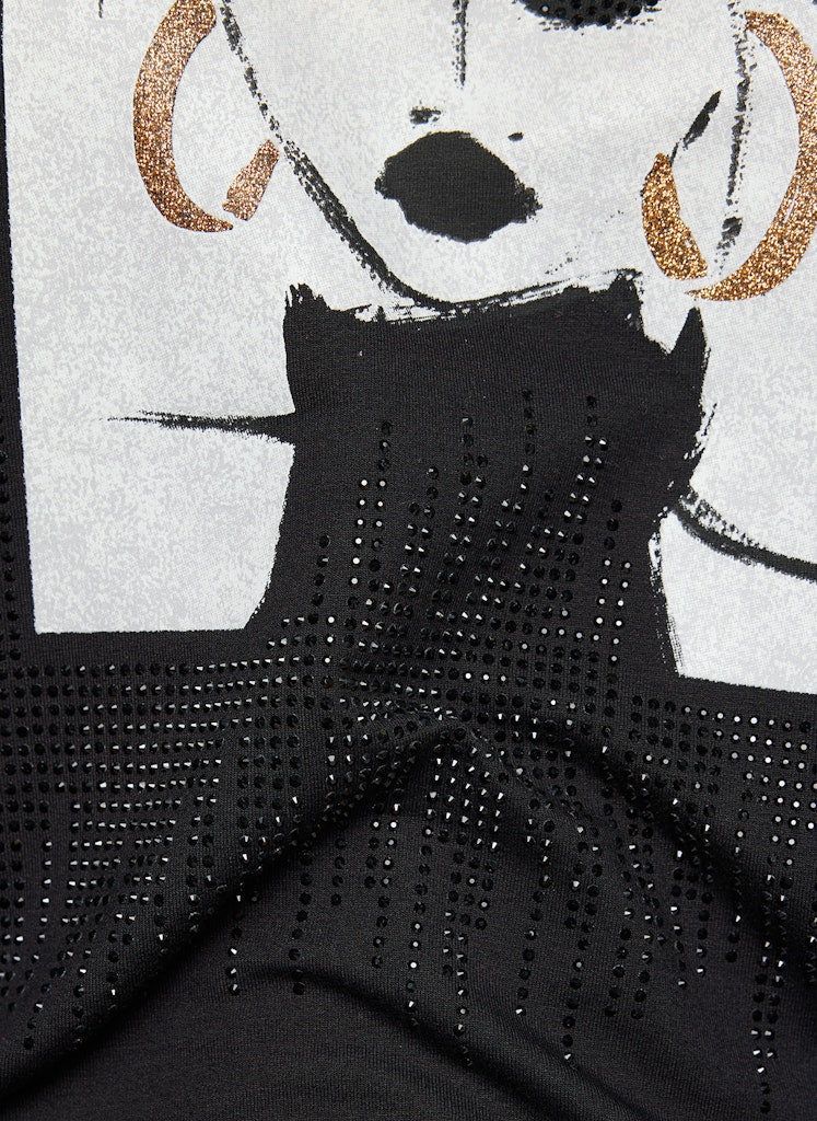 Mit seinem ausdrucksstarken Frontmotiv in Kombination mit glitzernden Strasssteinen setzt dieses Langarmshirt ein modisches Statement. Der Rundhalsausschnitt und die Ärmel mit Bündchen sorgen für ein angenehmes Tragegefühl. Dank des weichen Viskose-Elasthan-Mix trägt sich das Shirt besonders komfortabel und bleibt formstabil. Ideal für Looks mit modischer Attitüde. Weiche Viskose-Elasthan-Qualität. Auffälliger Print mit Strassdetails. Mit Rundhalsausschnitt gearbeitet. Bündchen an den Ärmeln. Leicht taillierte Passform.