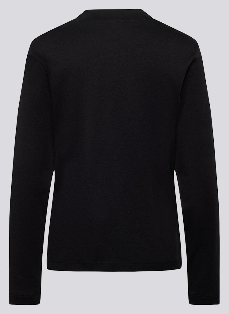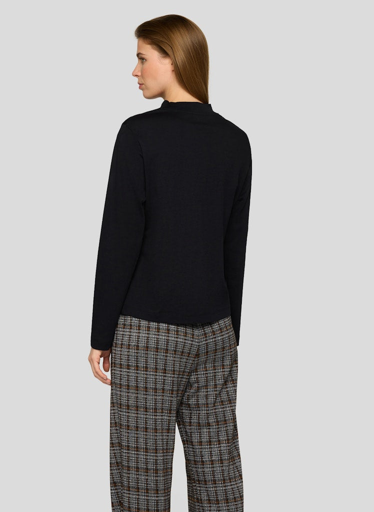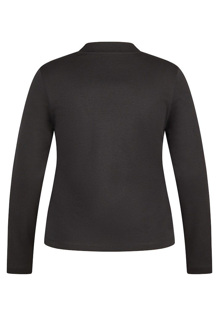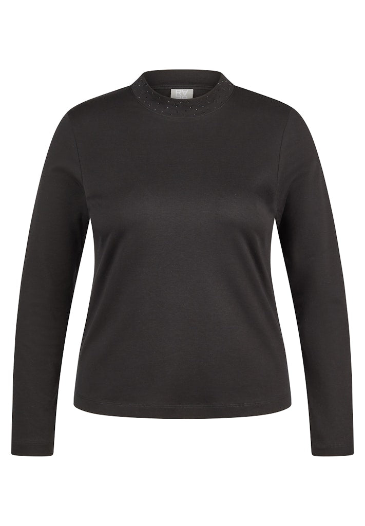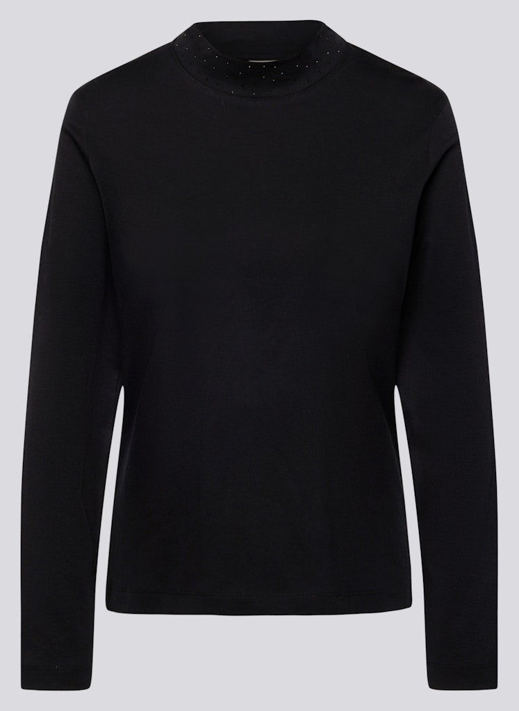 Der schlichte Schnitt dieses Shirts wird durch einen schmalen, leicht erhöhten Stehkragen stilvoll ergänzt. Kleine Strasssteine am Ausschnitt sorgen für dezente Glanzeffekte und machen das Basic-Design zu einem Hingucker. Gefertigt aus reiner Baumwolle trägt sich das Langarmshirt angenehm weich auf der Haut und bietet Bewegungsfreiheit im Alltag. Reine Baumwollqualität. Schmaler Stehkragen mit Strass. Schlichtes, elegantes Design. Trageangenehm und hautfreundlich. Ideal kombinierbar im Alltag.