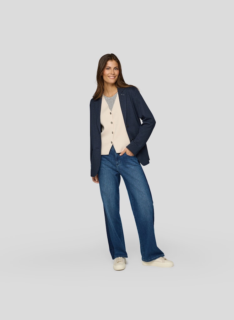 Diese Strickweste präsentiert sich in feiner Rippstruktur und überzeugt mit klassischem Design. Der V-Ausschnitt und die dekorative Knopfleiste verleihen ihr einen zeitlosen Look, der sich perfekt zu Blusen, Shirts oder Kleidern kombinieren lässt. Dank der weichen Qualität bietet die Weste hohen Tragekomfort und bleibt auch bei längerem Tragen angenehm auf der Haut.Feine Rippstrick-Qualität.V-Ausschnitt.Durchgehende Knopfleiste.Figurbetonte Passform.Vielseitig kombinierbar.