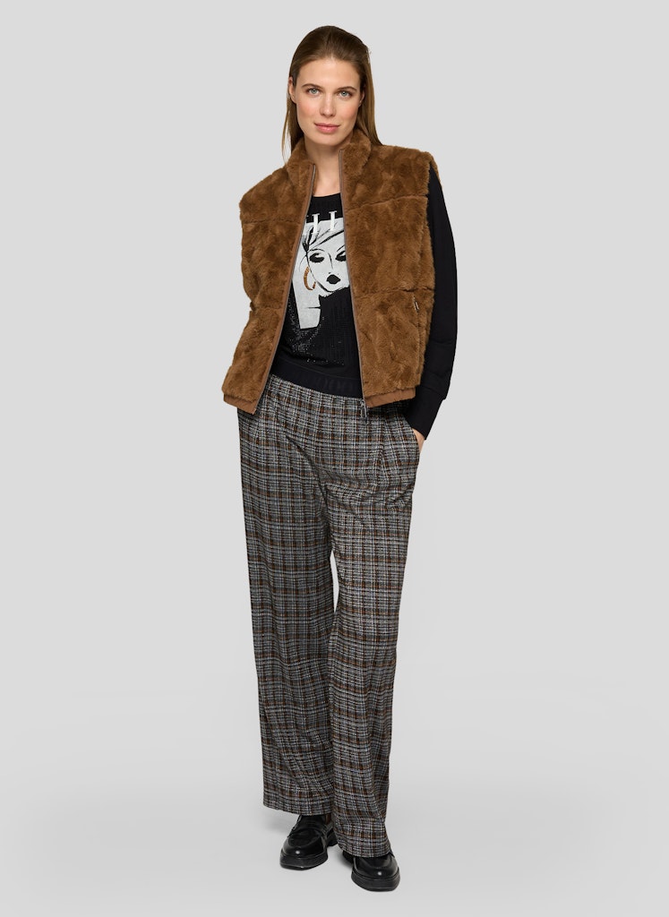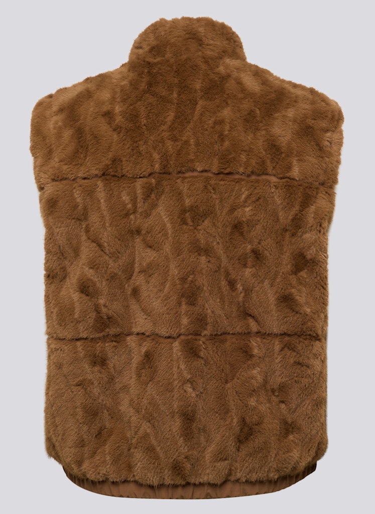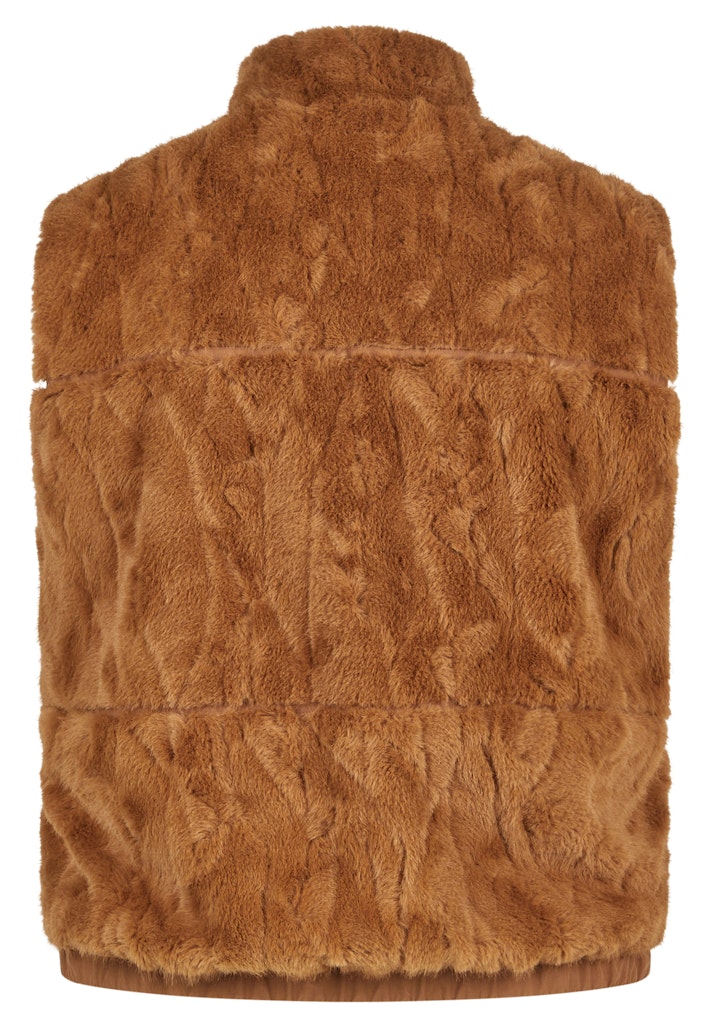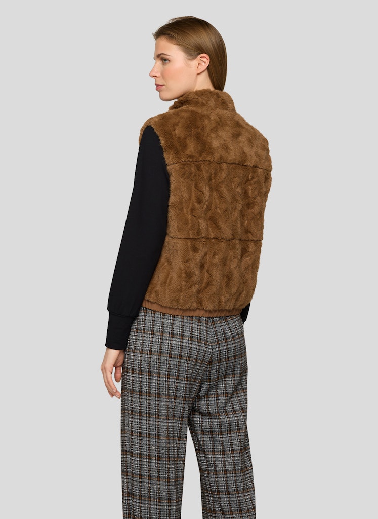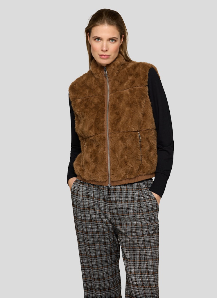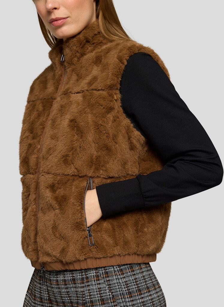 Weiches Kunstfell und eine moderne Silhouette machen die Weste zum perfekten Kombipartner für Übergangstage. Der hohe Stehkragen schützt vor Wind, während seitliche Zippertaschen und der durchgehende Reißverschluss funktionale Akzente setzen. Lässt sich sportlich oder elegant stylen _ ganz nach Anlass. Flauschige Felloptik. Stehkragen mit Reißverschluss. Seitliche Reißverschlusstaschen. Leicht gefüttert für mehr Komfort. Pflegeleicht und formstabil.
