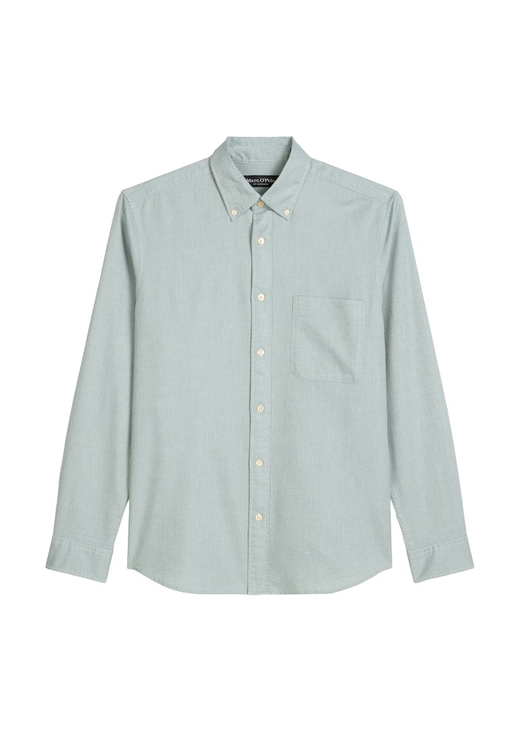 Leichtes Herrenhemd aus reiner Bio-Baumwolle mit feinen Melange-Garnen für ein außergewöhnlich weiches Tragegefühl. Die sanft angeraute Oberfläche und die industrielle Enzymwäsche verleihen dem Hemd eine authentische, casual Waschoptik. Klassischer Button-Down-Kragen, lange Ärmel mit Zweiknopf-Manschetten und abgerundeter Saum sorgen für entspannten Regular Fit und vielseitige Kombinationsmöglichkeiten – ideal für einen modernen, stilvollen Winterlook.