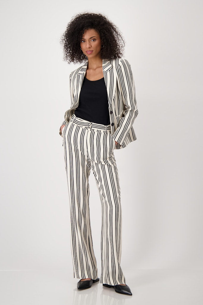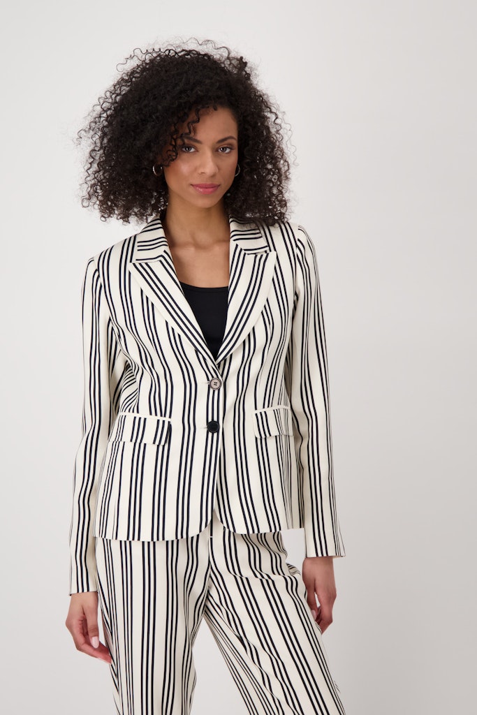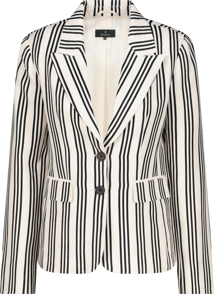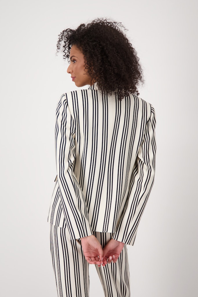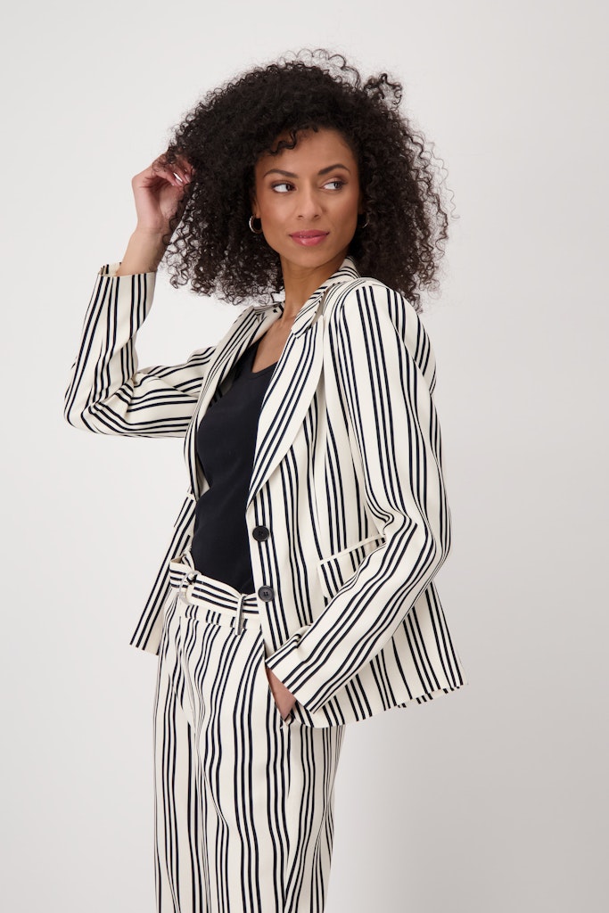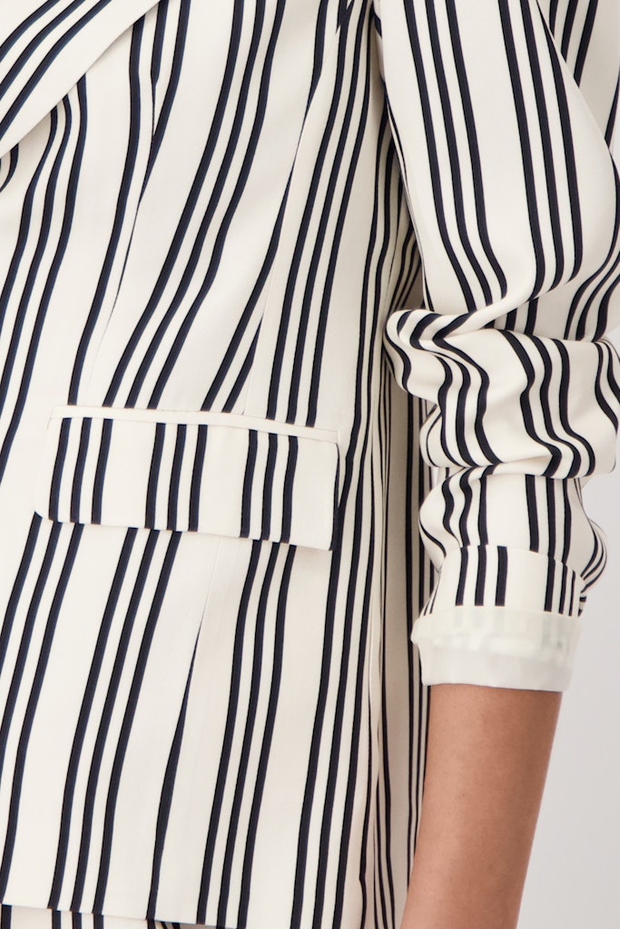 Dieser Blazer aus 100% fließender Viskose überzeugt mit einem eleganten Reverskragen und zeitlosen Streifen.