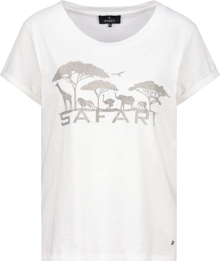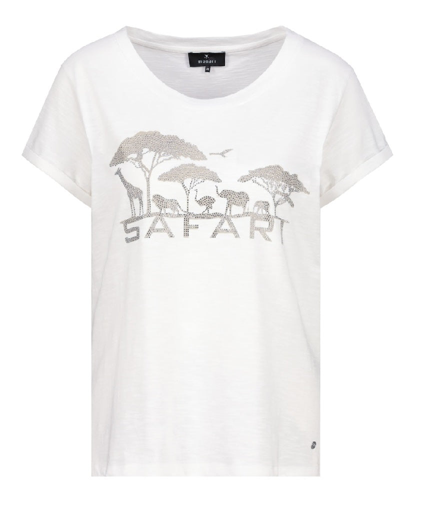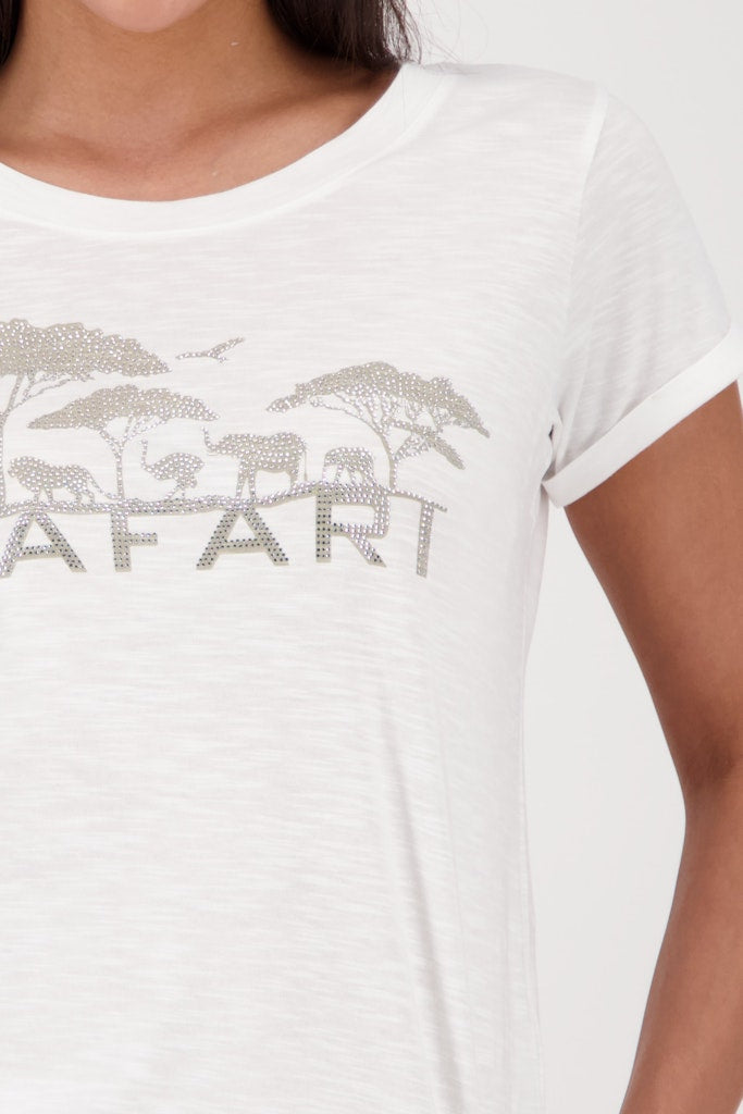 Stilvolles T-Shirt aus Baumwolle und Modal mit Tierdruck und Strasssteinen. Der Ärmelaufschlag verleiht dem Design eine besondere Note.