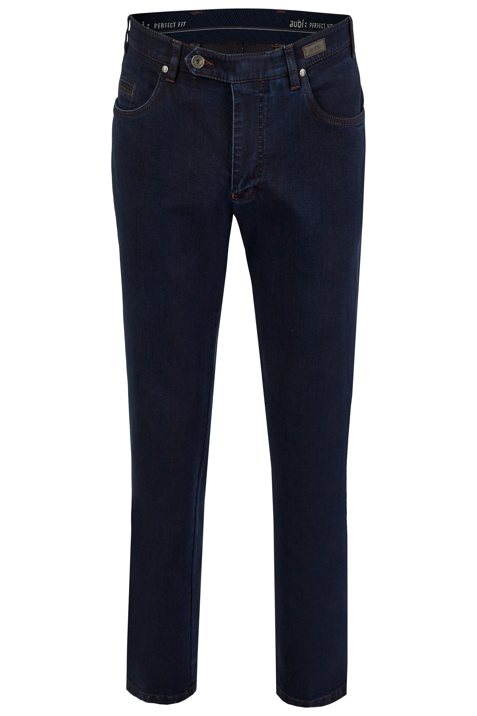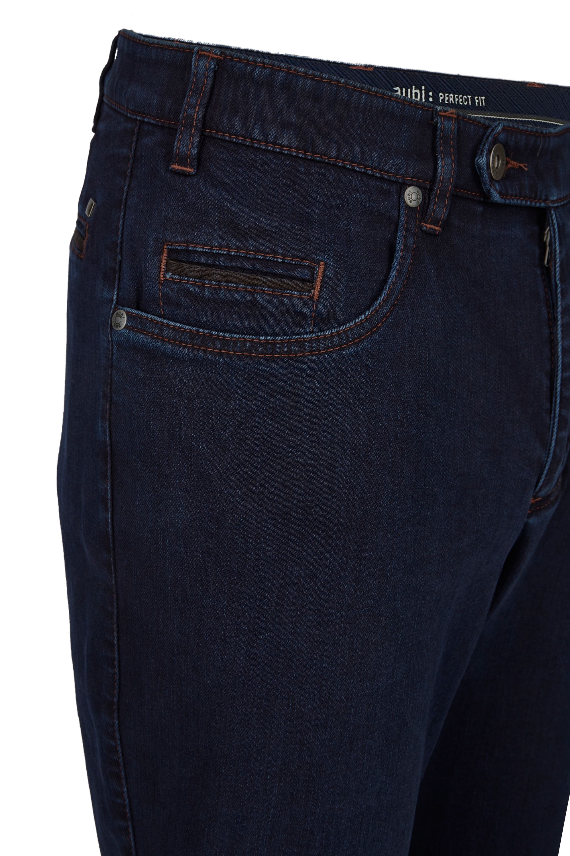 Für einen sportlich, entspannten Tragekomfort sorgt diese High Flex Denimjeans der Marke aubi: perfect fit. Qualität und Passform zeichnen dieses Produkt aus.